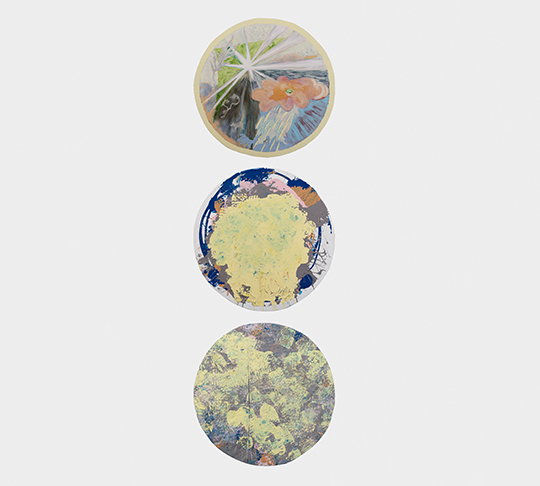 絵を描いているときも生活は続いている。水平に敷いたキャンバスの上で生活をしながら垂直なキャンバスに絵を描く。私の足下にあるキャンバスからペンキが溢れて床に染みをつくる。これらはすべて私の生活であり絵画である。