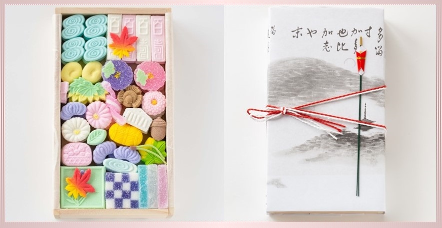 四季折々の自然美、花鳥風月を彩りよく、艶やかに。見た目にも楽しいお干菓子の詰合せです。