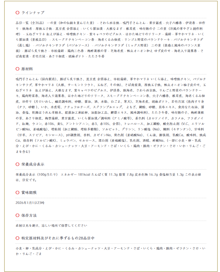 新しい年のはじまりにふさわしい、華やかで安心なおせちを。