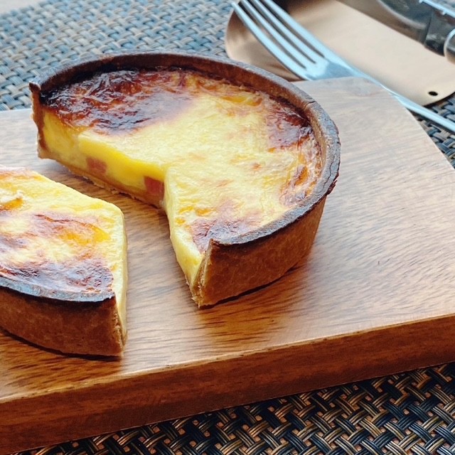 配合で焼き上げたクリーミーな6種類のチーズ入りキッシュです。