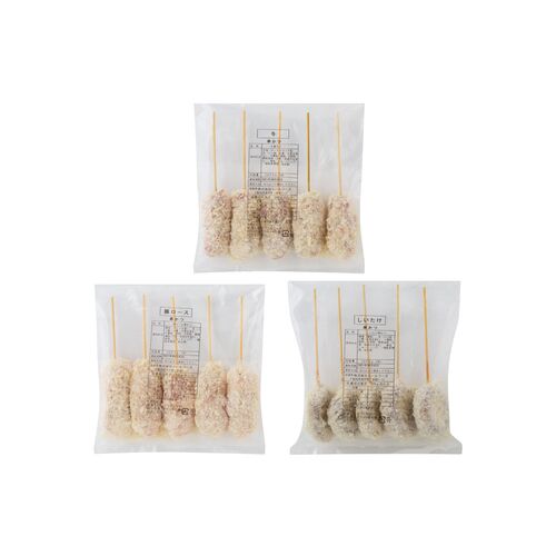 ■規格:豚ロース串カツ25g×5(計125g)、牛串カツ25g×5(計125g)、椎茸串カツ25g×5 (3種・計15本)