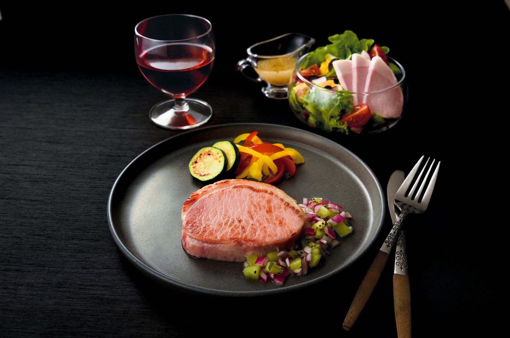 豚肉の持ち味を生かした深い旨みとまろやかさをお届けします。 優しいスモークの香りとジューシーな味わい『こだわりのハム』をお届けします。