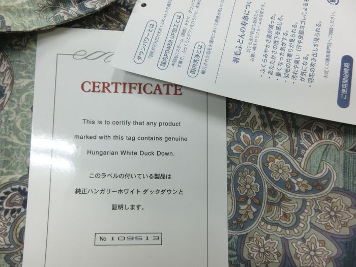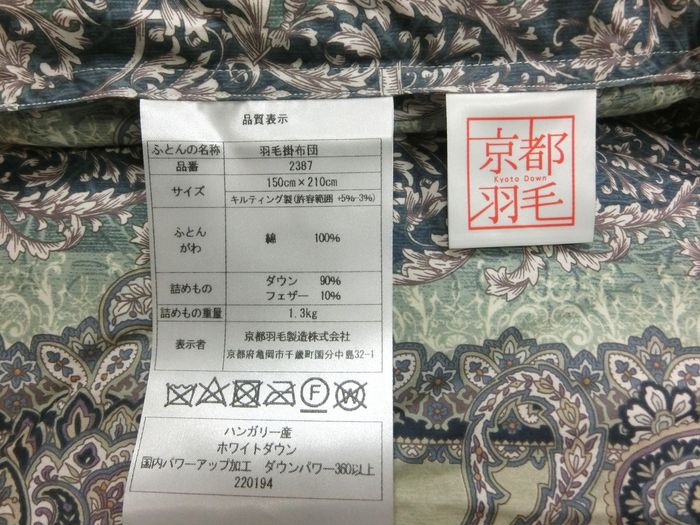 *ダウンパワー360以上、ハンガリー産ホワイトダックダウン入り国産羽毛ふとんです。