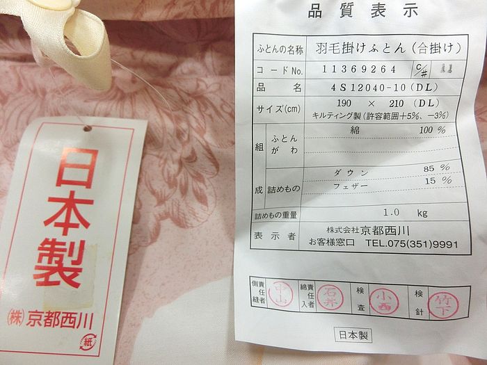 *ダックダウン85% 1.0kg入り。とてもボリューム感のある羽毛合い掛けです。