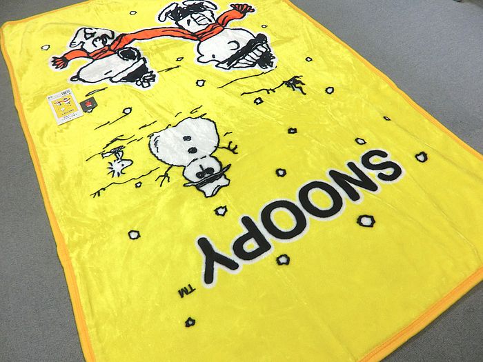 スヌーピー ハーフ毛布 100x140cm KK450SN4 イエロー 防寒 ハーフケット ハーフサイズ 洗える ウォッシャブル 車内 キャンプ 携帯用 小さいサイズ モウフ もうふ ブランケット SNOOPY ウッドストック チャーリーブラウン