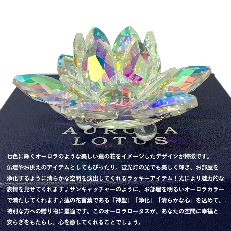 七色に輝くオーロラのような蓮の花 オーロラロータス S サイズ クリスタル ガラス オーロラ ロータス 蓮の花 インテリア 浄化 運気アップ 仏壇 お供え プレゼント 誕生日 母の日 記念日 敬老の日 ラッキーアイテム