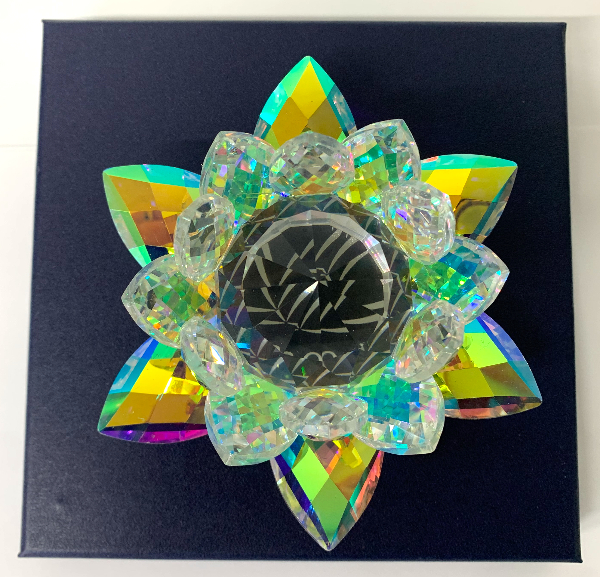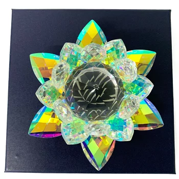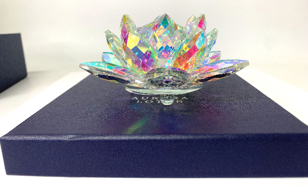 七色に輝くオーロラのような蓮の花 オーロラロータス M サイズ クリスタル ガラス オーロラ ロータス 蓮の花 インテリア 浄化 運気アップ 仏壇 お供え プレゼント 誕生日 母の日 記念日 敬老の日 ラッキーアイテム