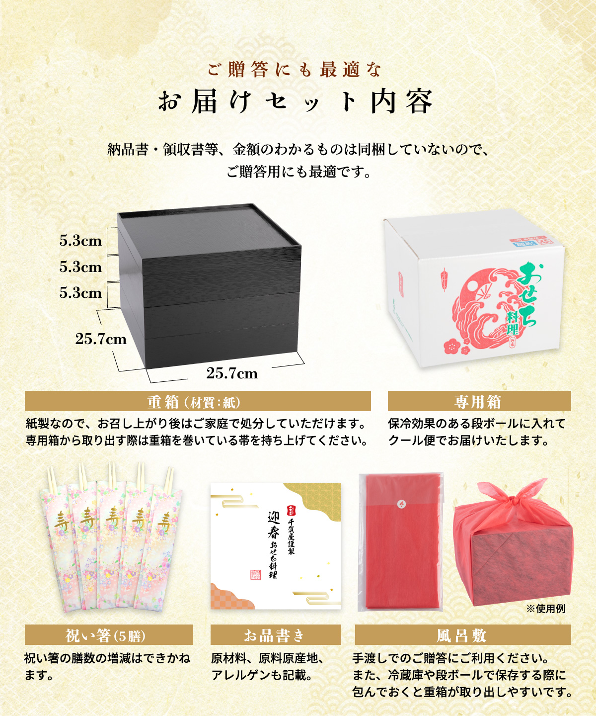 8.5寸三段重/全59品/4~5人前(目安)/冷蔵配送/盛り付け済み