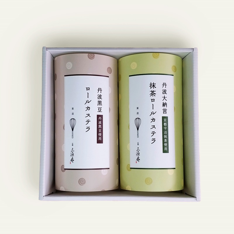 [抹茶ロールカステラ] 鶏卵(国産)、砂糖、小麦粉、大納言納豆(砂糖、小豆)、水飴、白餡(いんげん豆、砂糖、水飴)、みりん、抹茶、蜂蜜、(一部に卵・小麦を含む)