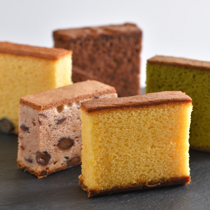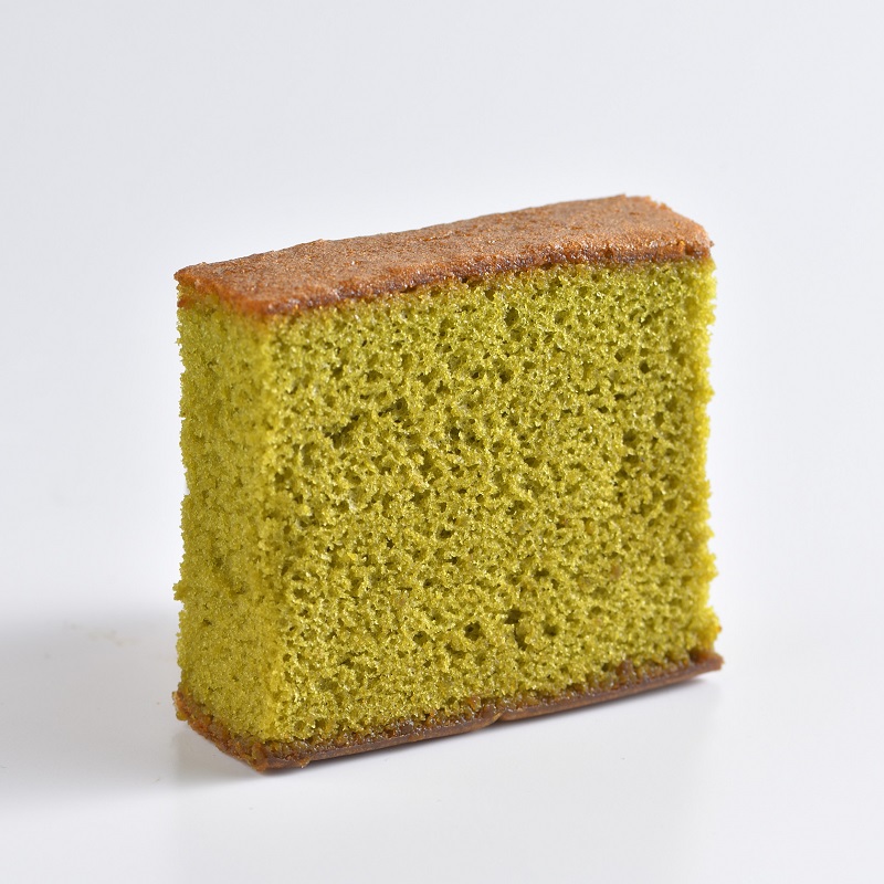 【宇治抹茶】 厳選された宇治抹茶を贅沢に使用した、風味豊かな抹茶の香りと味わい。しっとりと口溶けの良い、京都ならではのカステラです。