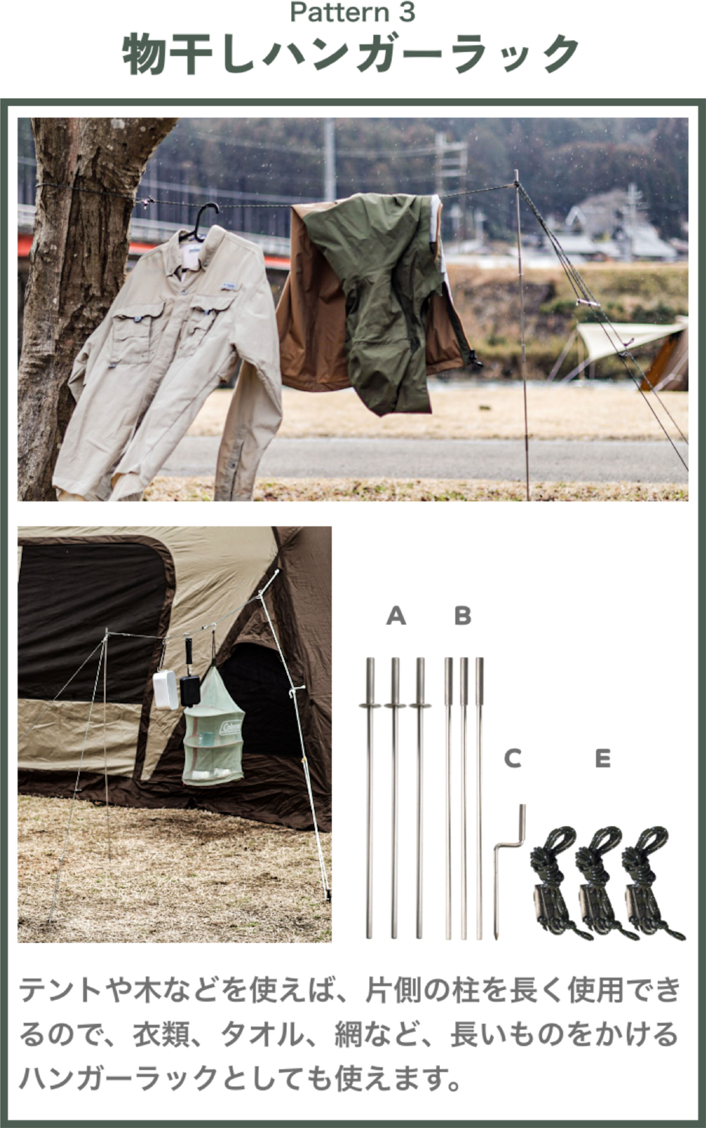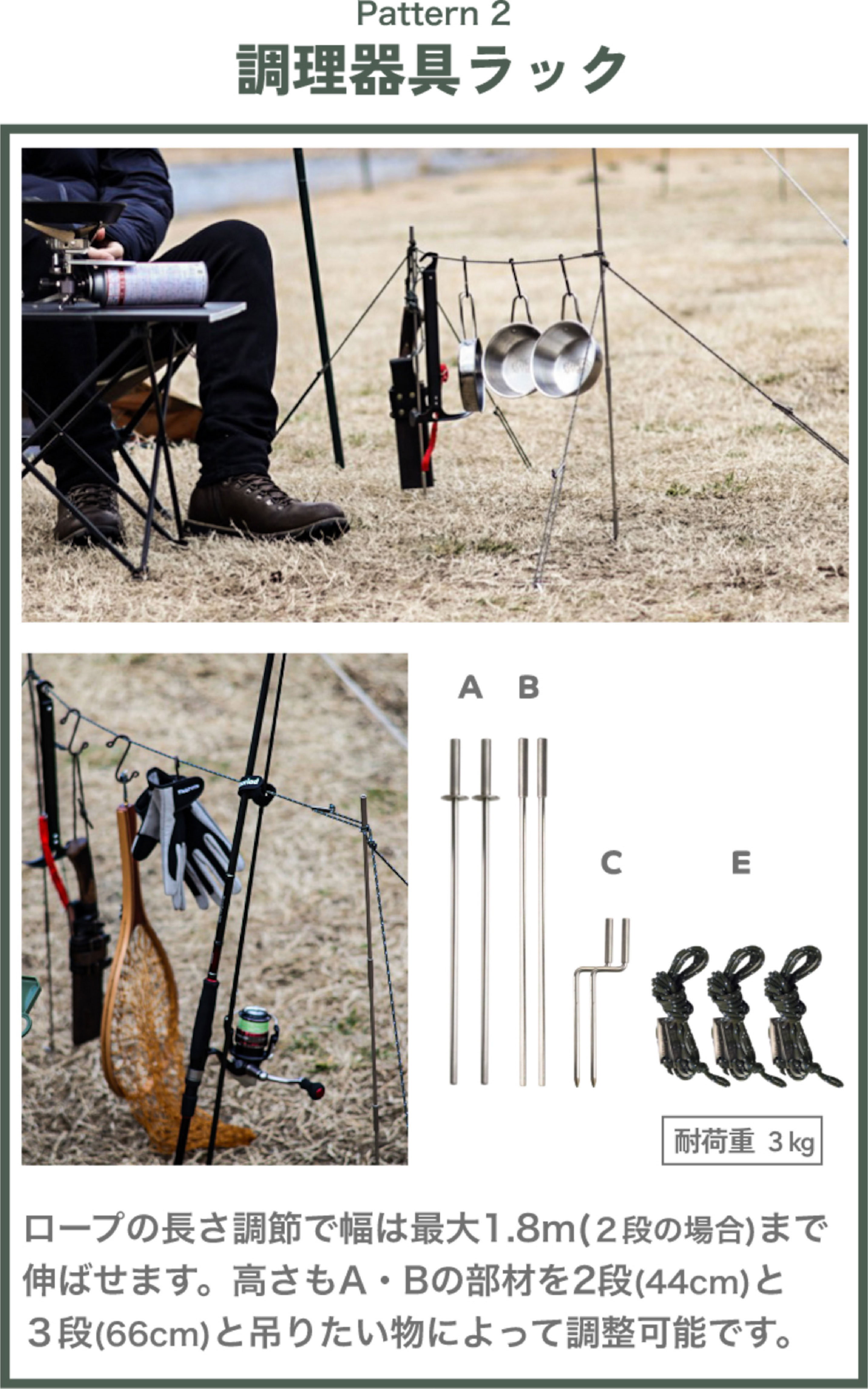 キャンプやアウトドアの荷物整理をサポートする、画期的なマルチロープラック!