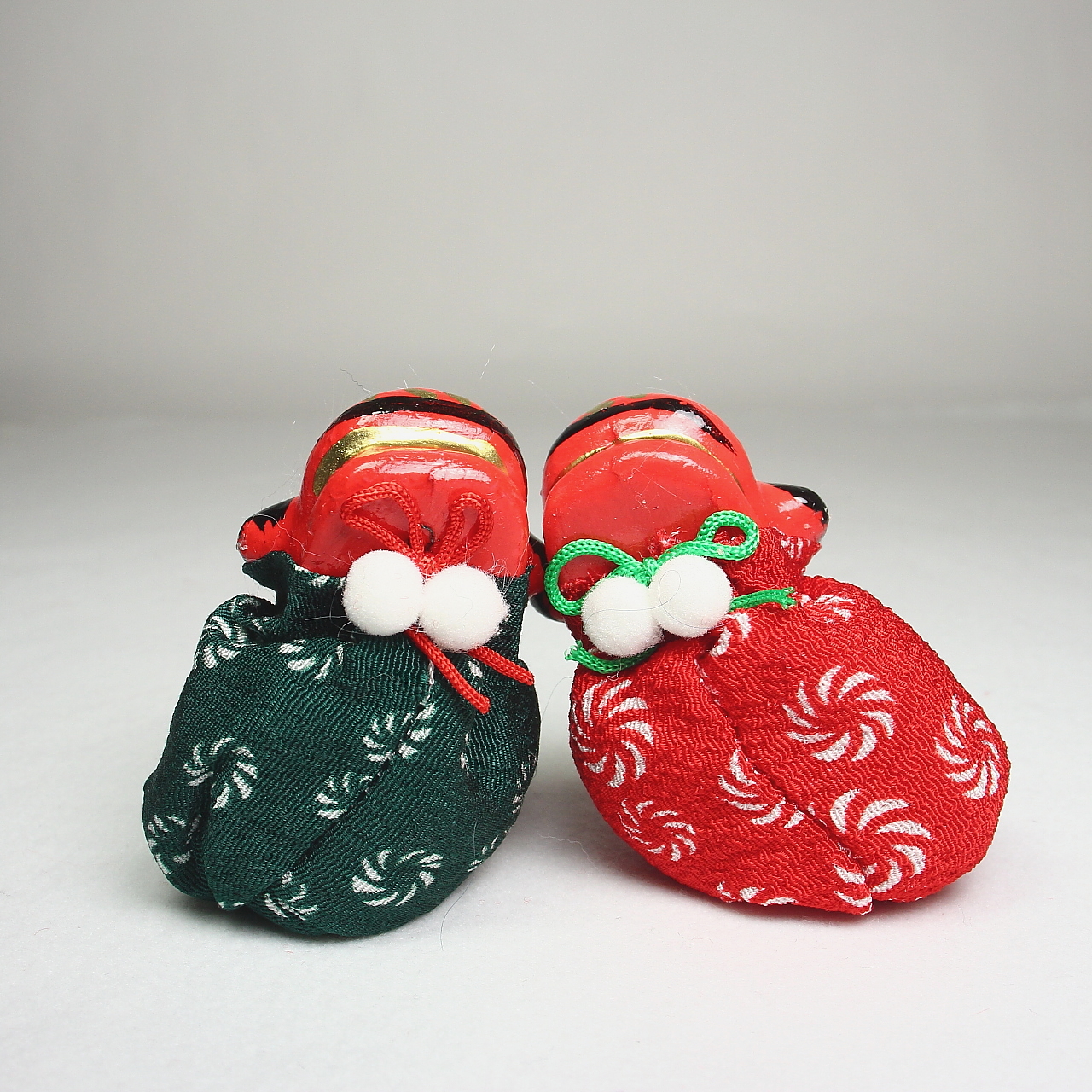 胴部分はちりめんで、定番の緑とおめでたい赤の2色をご用意致しました。ペアで飾っていただくと一層華やかです。
