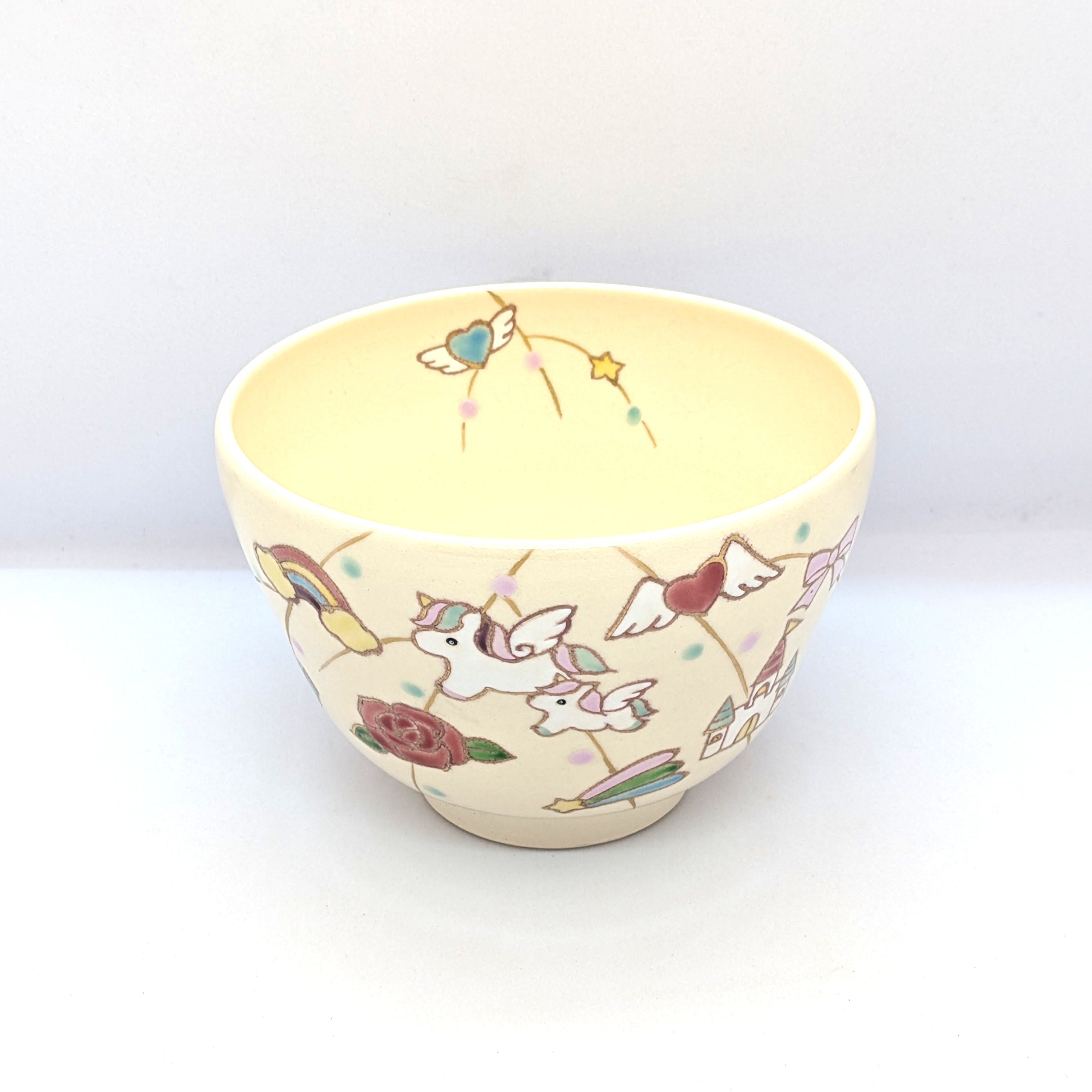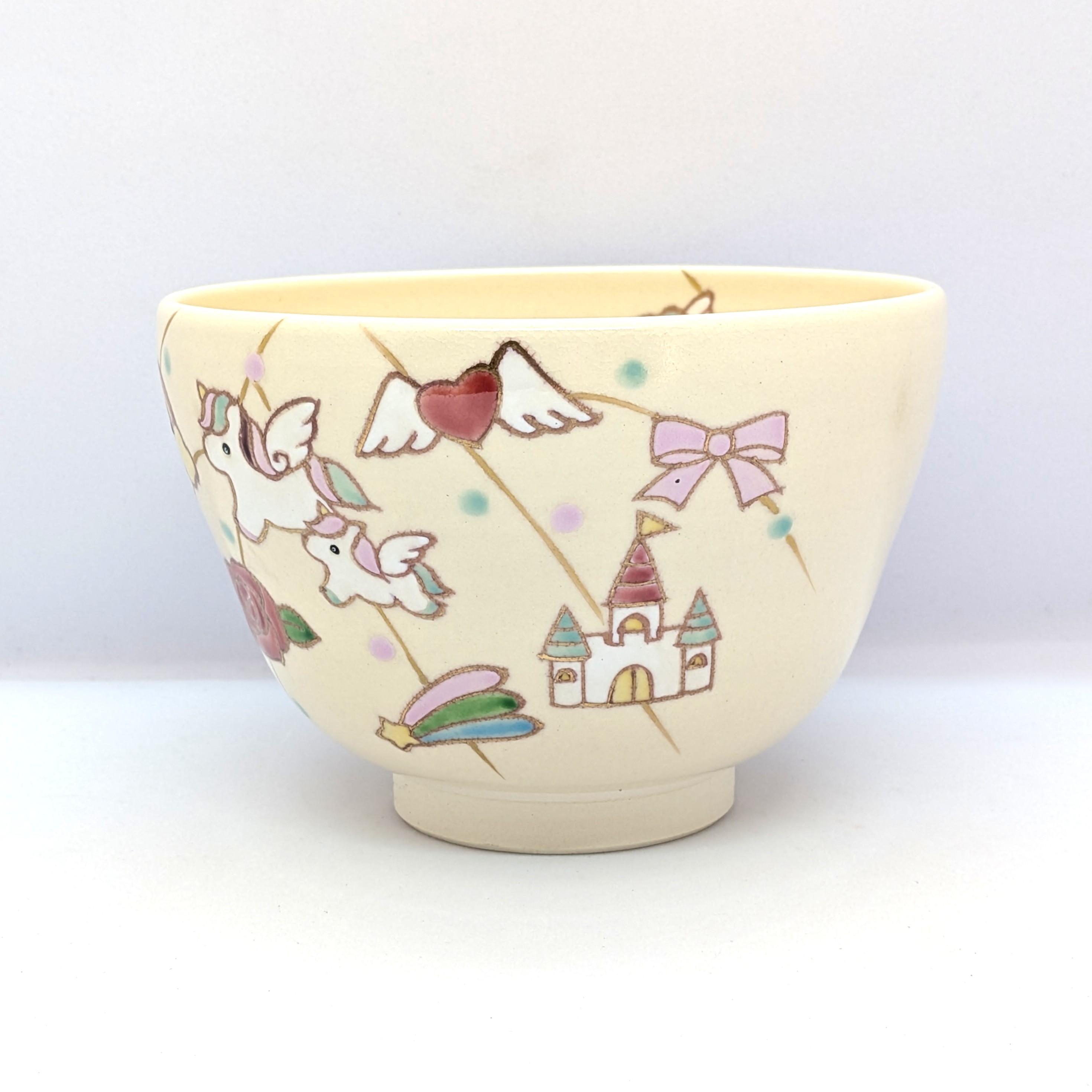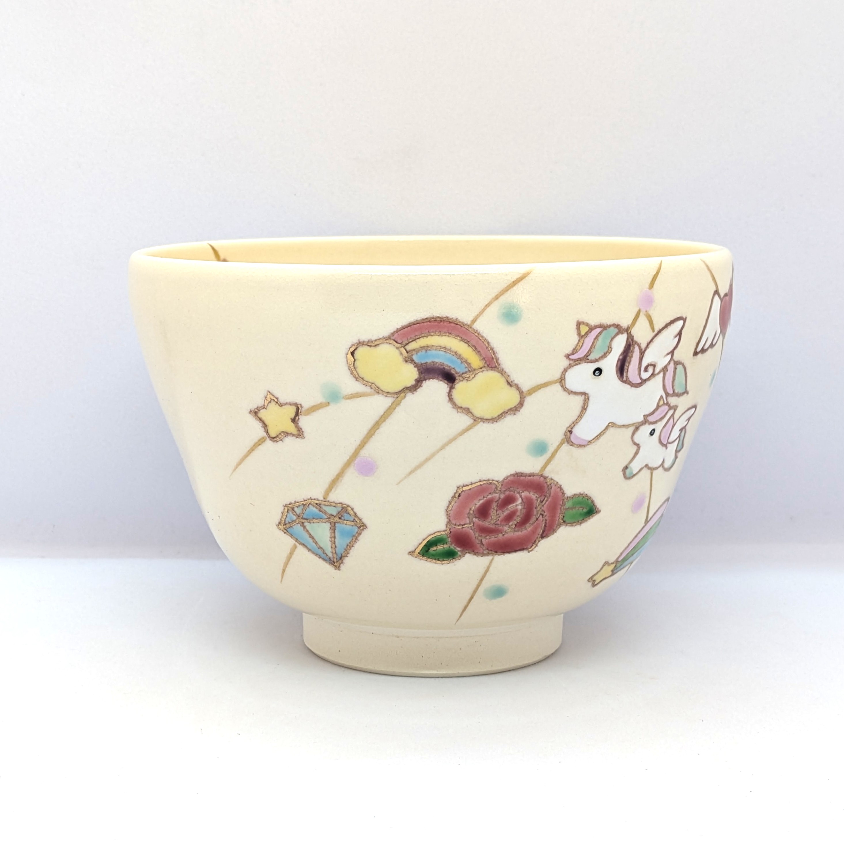 京焼・清水焼の茶盌「もち花 ペガサス・ユニコーン(アリコーン)」柄 1ケ。