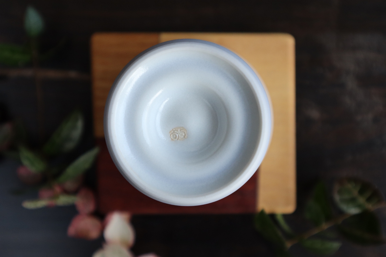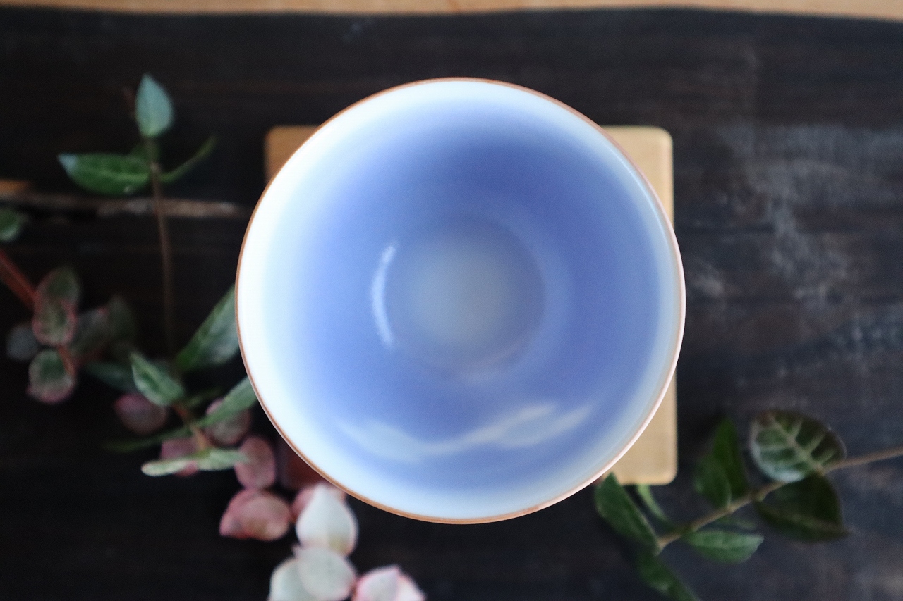 内側は艶消しの白磁釉で部分的に青く出ているのは