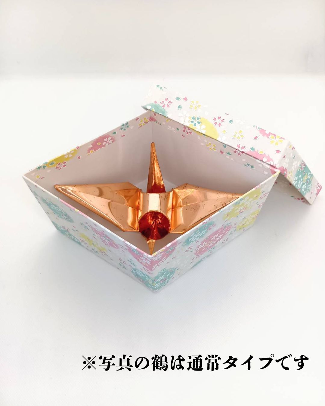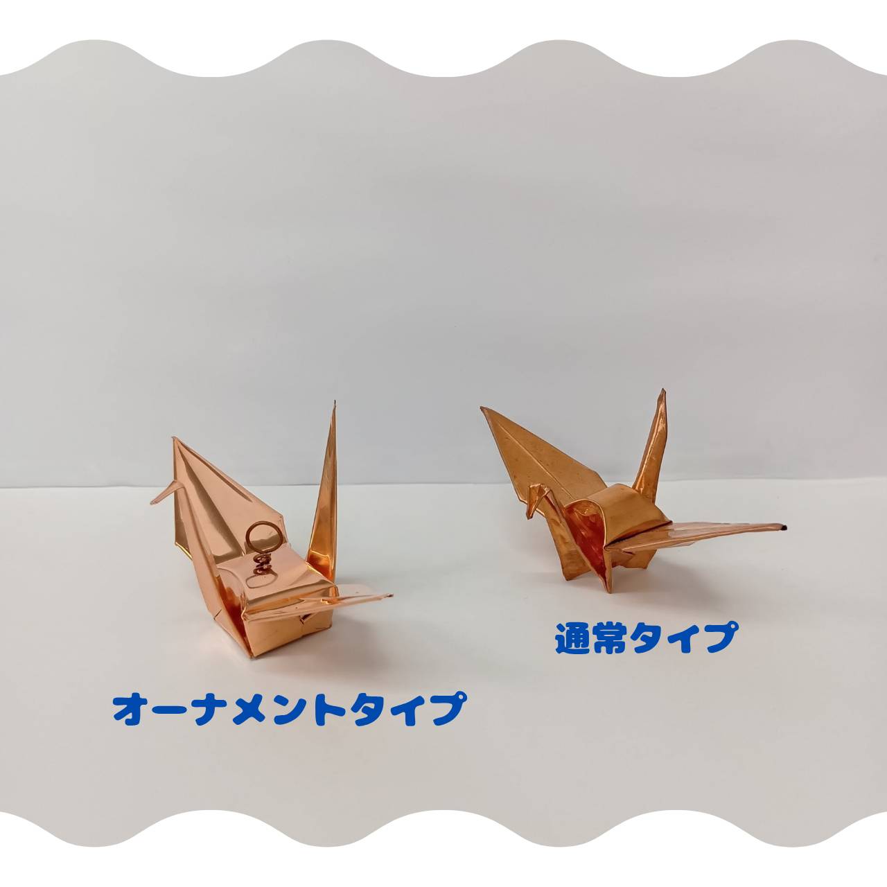 通常の置き型折り鶴とは少し異なる形状で制作しています。