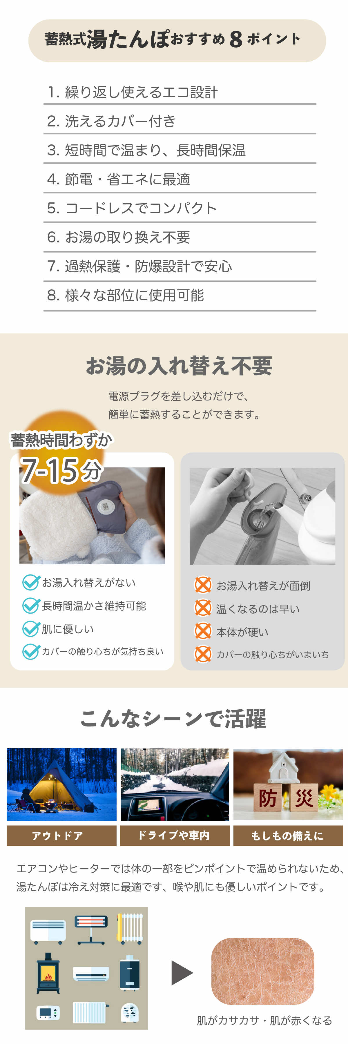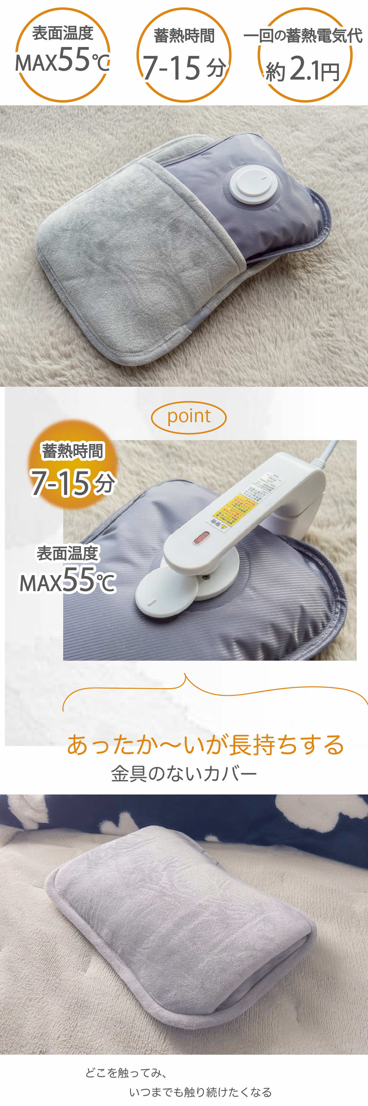 セット内容:湯たんぽ、保温カバー、蓄熱用電源ケーブル、取扱説明書