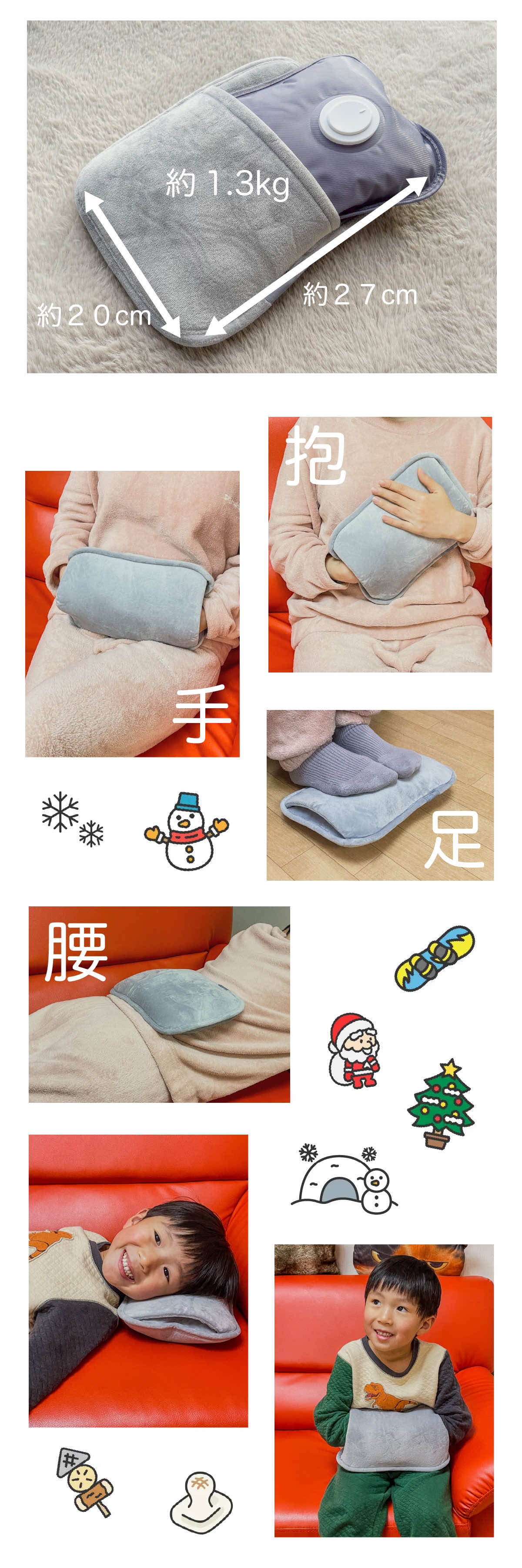 本体重量:約1300g(保温カバー:60g/湯たんぽ:1230g)