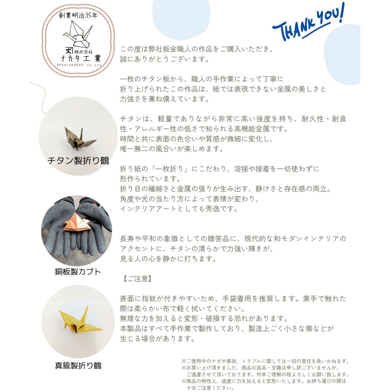 折り鶴:約12㎝(w)×6㎝(D)×5㎝(H)