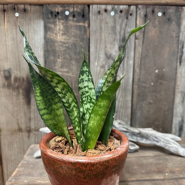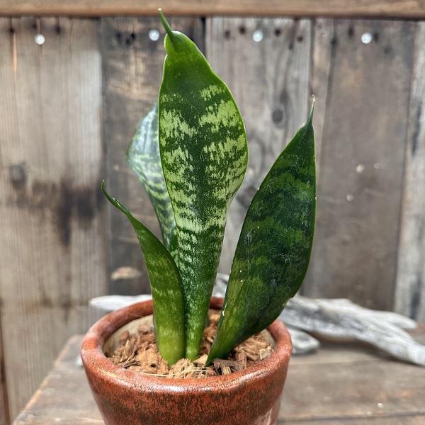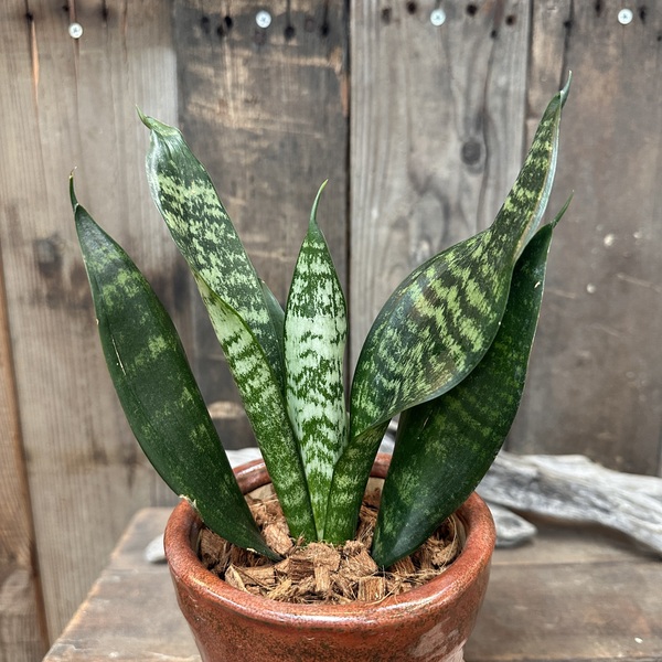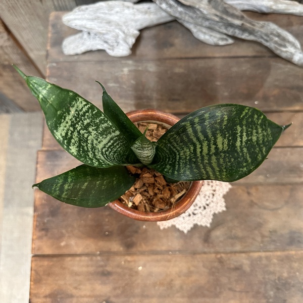 サンスベリア・ゼラニカは、濃い緑の葉に白〜明るいグリーンのゼブラ柄(横縞模様)が美しい、スタイリッシュで強健な観葉植物です。乾燥や耐陰性に特に優れ、空気清浄効果も高く、初心者でも育てやすい大型の品種として人気があります。シックでモダンなインテリアによく合います。
