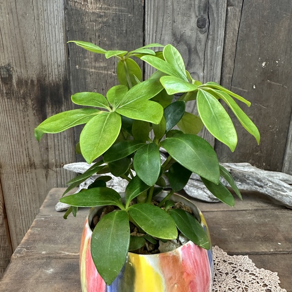 ホンコンカポック(シェフレラ)は、丸みのある濃緑色の葉が放射状につく、非常に丈夫で育てやすい常緑小高木です。耐寒性(0℃程度まで)、耐陰性、耐乾性に優れ、初心者でも室内・屋外問わず育てやすい観葉植物として人気です。