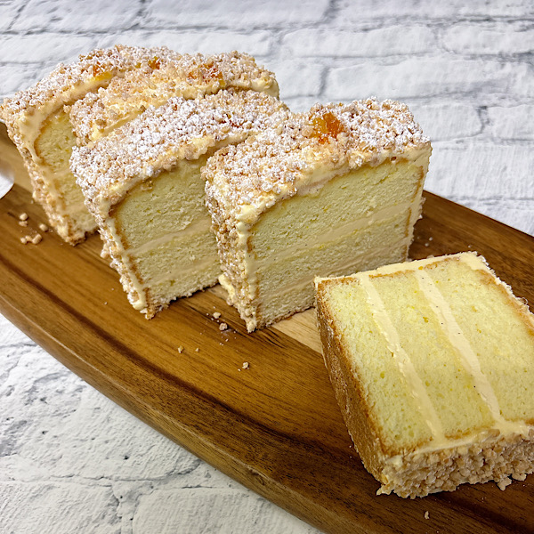 エレオノールのザンドクーヘンはアーモンドプードル入りのホロっと軽いスポンジにコクのあるバタークリーム、ダイスアーモンドを組み合わせたドイツ伝統のバターケーキです。