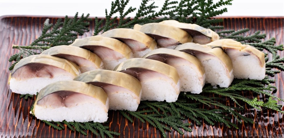 古来より京都では、京の町衆のご馳走といえば、”鯖寿し”といわれるほど、祭りの日やハレの日の食卓には鯖寿しが飾られておりました。現在でも京の三大祭(葵祭・祇園祭・時代祭)などの日には、鯖寿しを食べる風習がございます。江戸時代、若狭から京都までの道のりは、最短でも18里(72㎞)、その道のりを一昼夜かけて若狭の食材を京都まで運んでおりました。防腐剤も冷蔵技術もなかった当時は、鯖を京都まで運ぶ際に内臓を取り出し、腹に塩を抱かせていました。そのため、塩鯖はとても塩辛く保存食としての限られた食材でしかありませんでした。そこで京の町衆が鯖の旨味を引き出そうと、考えついたのが「京鯖寿し」です。歴史と風土に育まれた「京鯖寿し」は京を代表するハレの食として今なお、親しまれる食文化です。