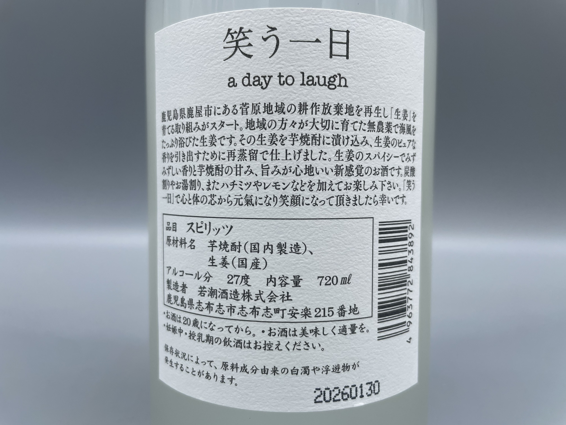 鹿児島県鹿屋市の「耕作放棄地甦りプロジェクト」で栽培された無農薬の生姜を使用し、ワイン酵母の芋焼酎に香りづけしたお酒。