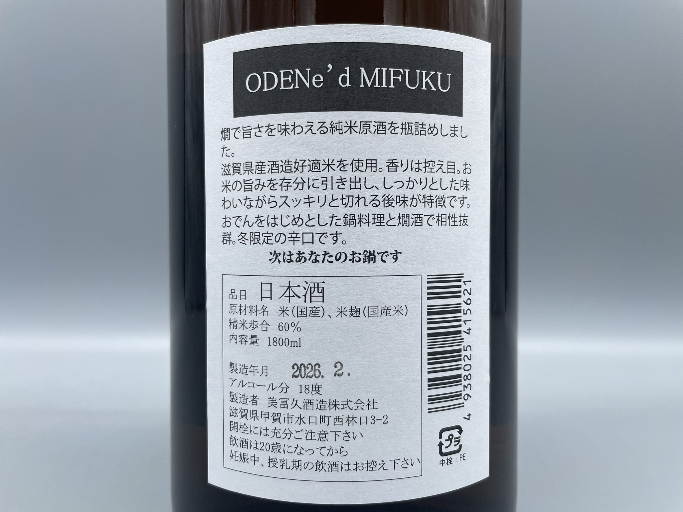 燗がうまい特別純米酒 ODENe’d MIFUKU