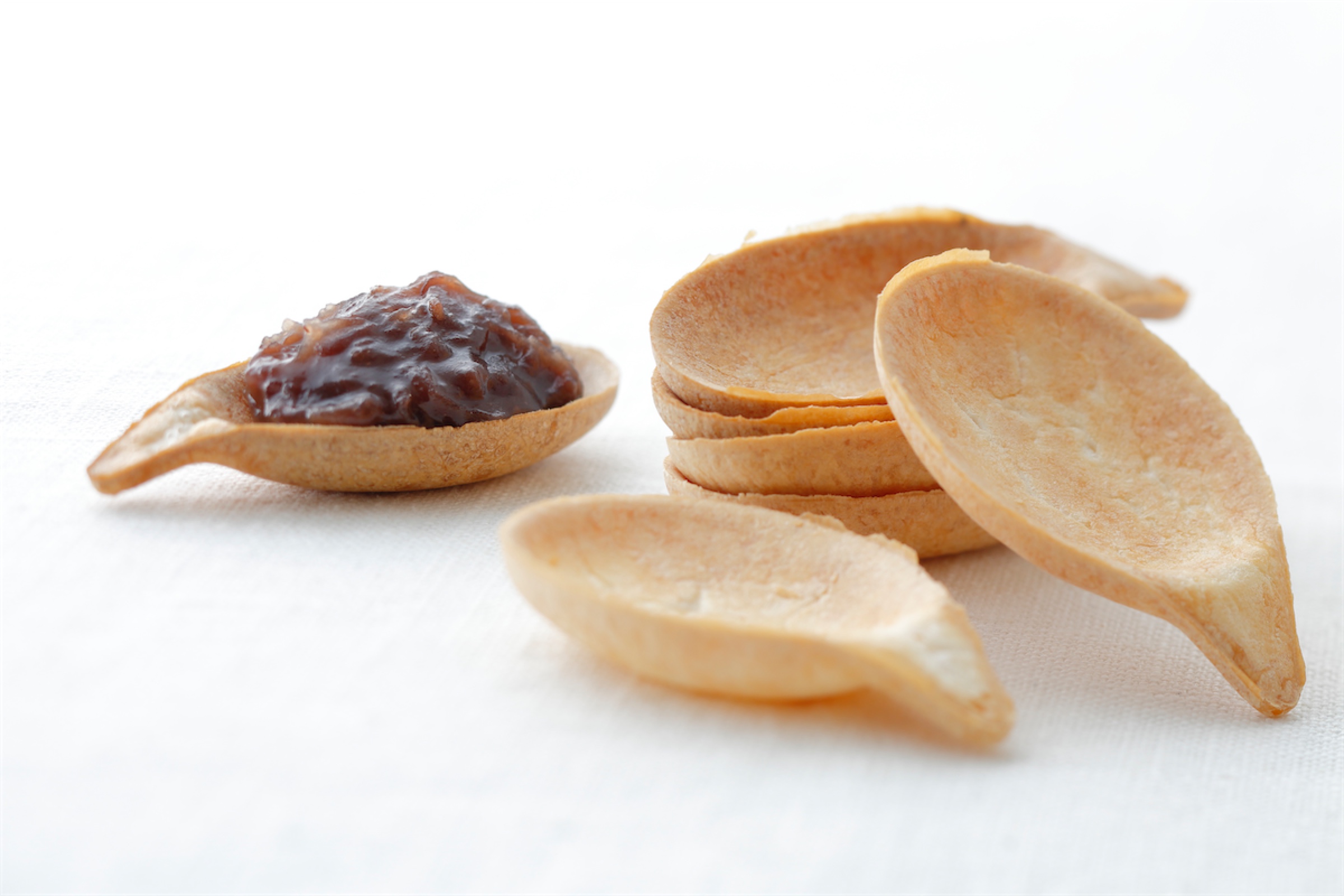 まるでスプーンであんを掬うように。そんな遊び心から生まれたおさじパイ。あんとパイは相性抜群、パイの芳ばしさと塩味があんを味を引き立てます。季のあんをたっぷりのせてお召し上がりください。
