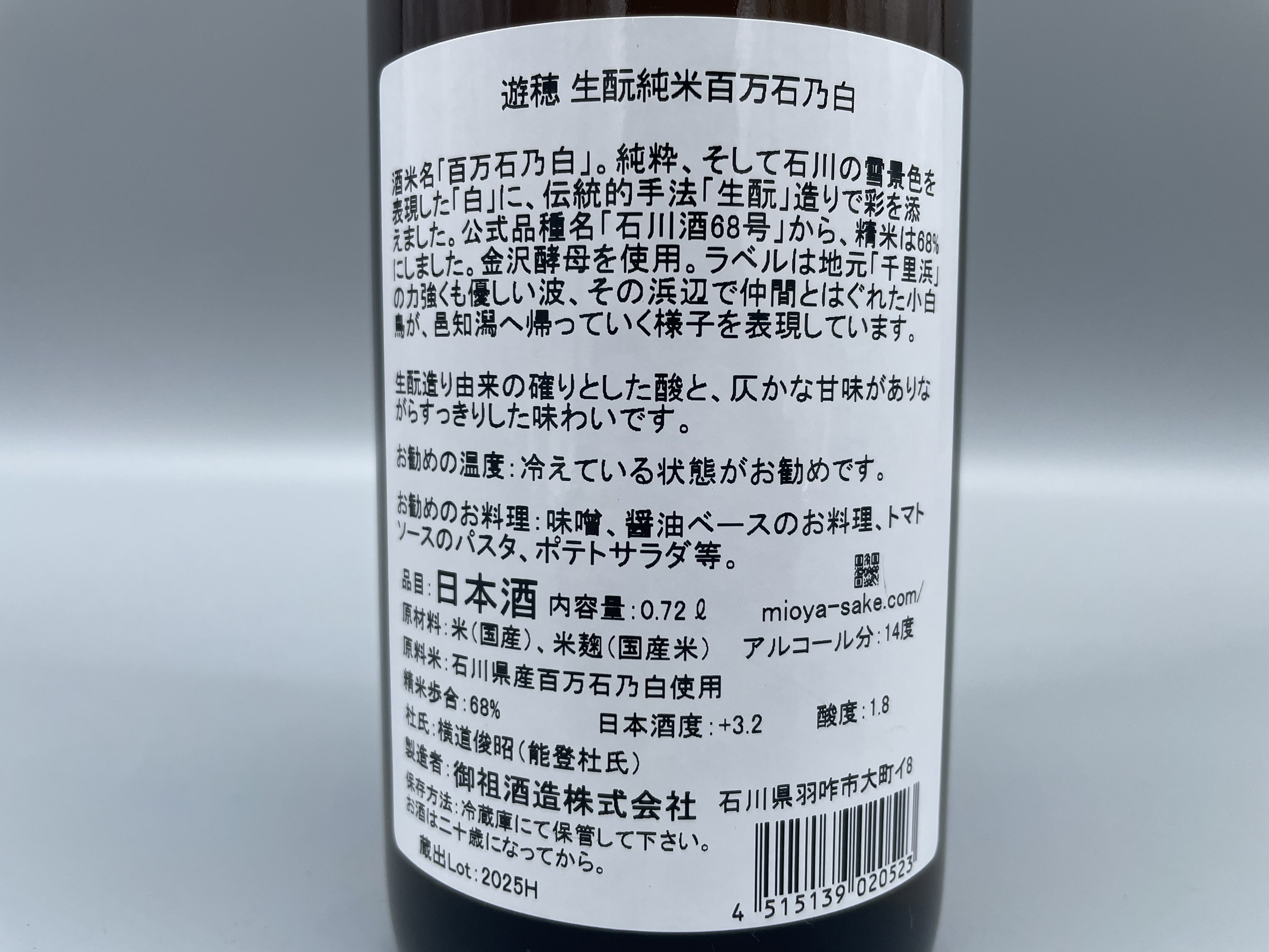 酒米名「百万石乃白」の公式品種名「石川酒68号」から、精米は68%にし、酵母には金沢酵母を使用。