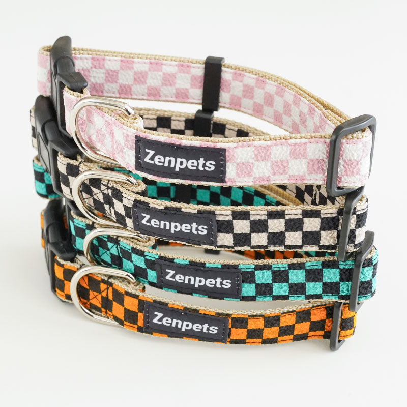 ・日本国内の工場で一本一本丁寧に生産された市松模様の首輪です。