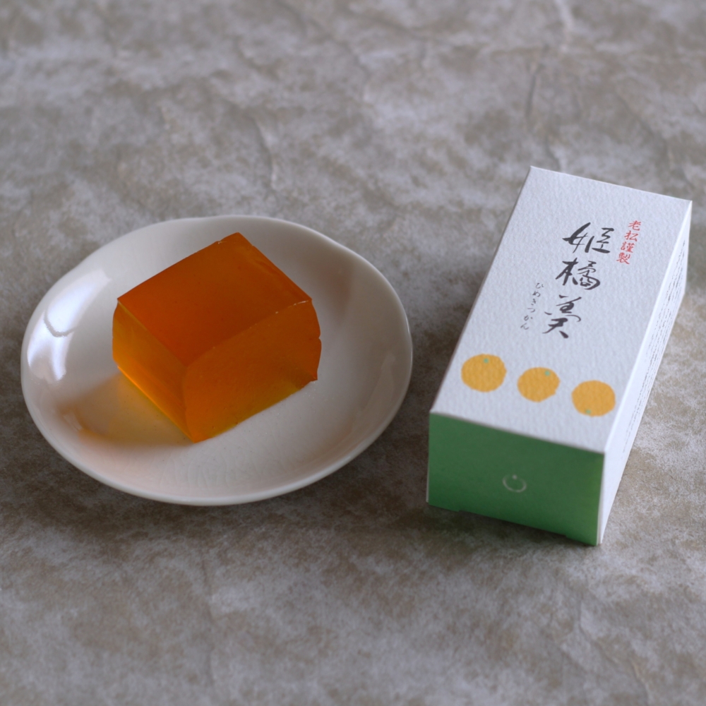 金柑の古名、姫橘(ひめたちばな)から銘々した、爽やかな金柑の風味を活かした琥珀羹。夏は冷やしてお召し上がりください。(賞味期間:製造日から80日)特定原材料等:無し