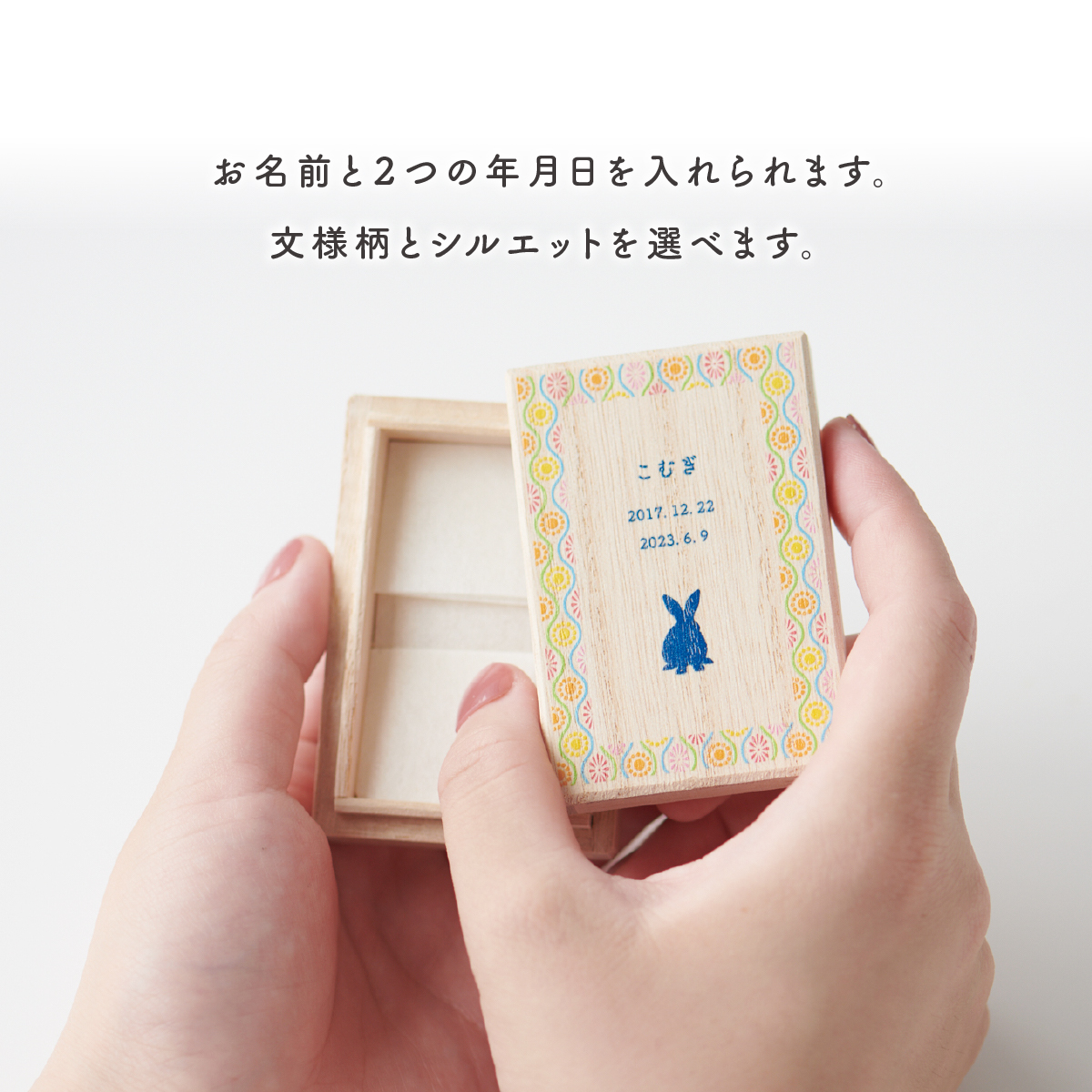 桐箱ケースにはペットちゃんに伝えたい言葉を込めた文様を施しました。