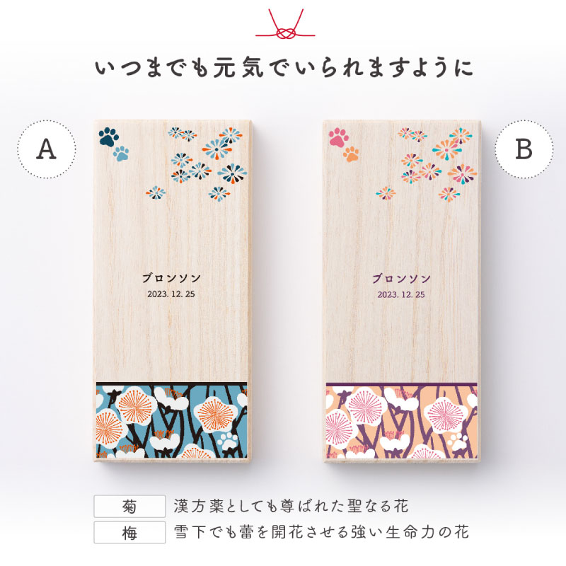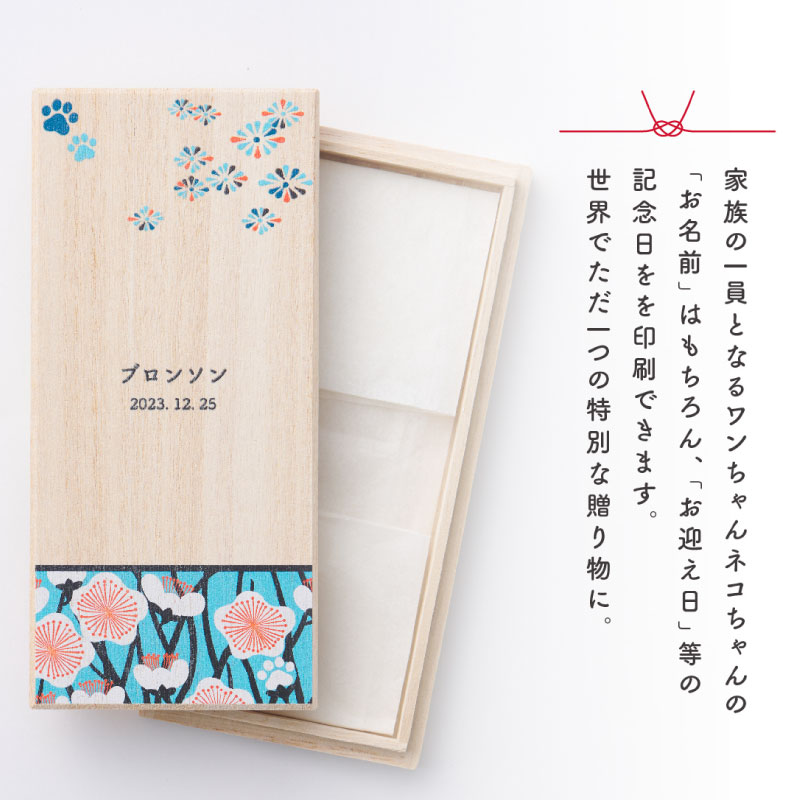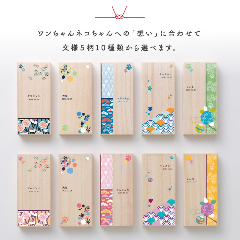 また、桐箱ケースにはペットちゃんへの想いを込めた文様を施しました。