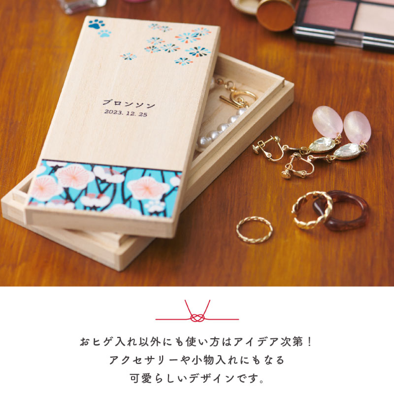 ポロッと抜け落ち生え変わるチャームなおヒゲを可愛い桐箱に入れて保管できます。