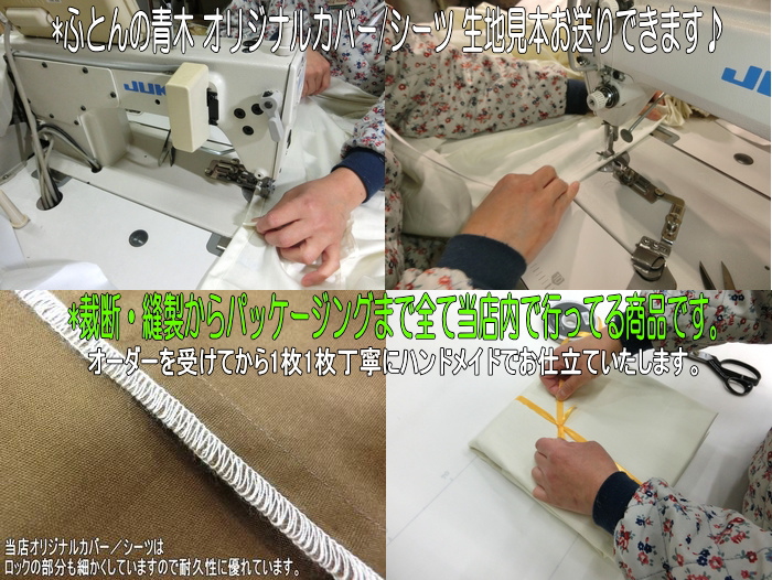 ふとんの青木店内にて全て手作りしています。丁寧で細かい縫製をしていますのでご安心下さい。