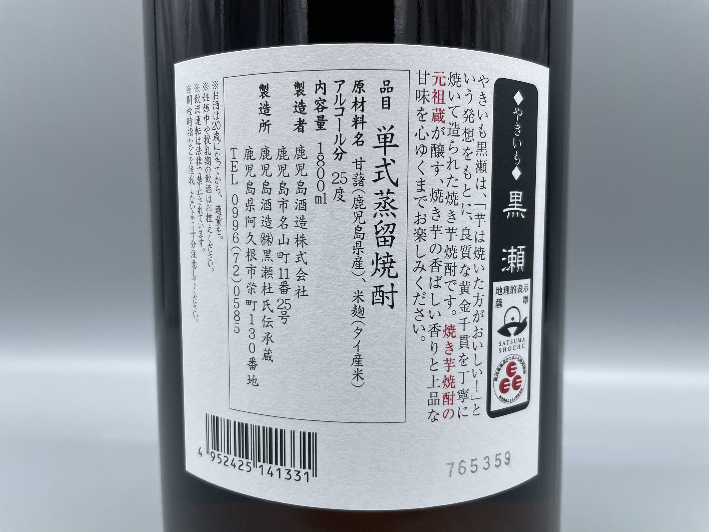芋焼酎 やきいも 黒瀬 鹿児島酒造 1800ml