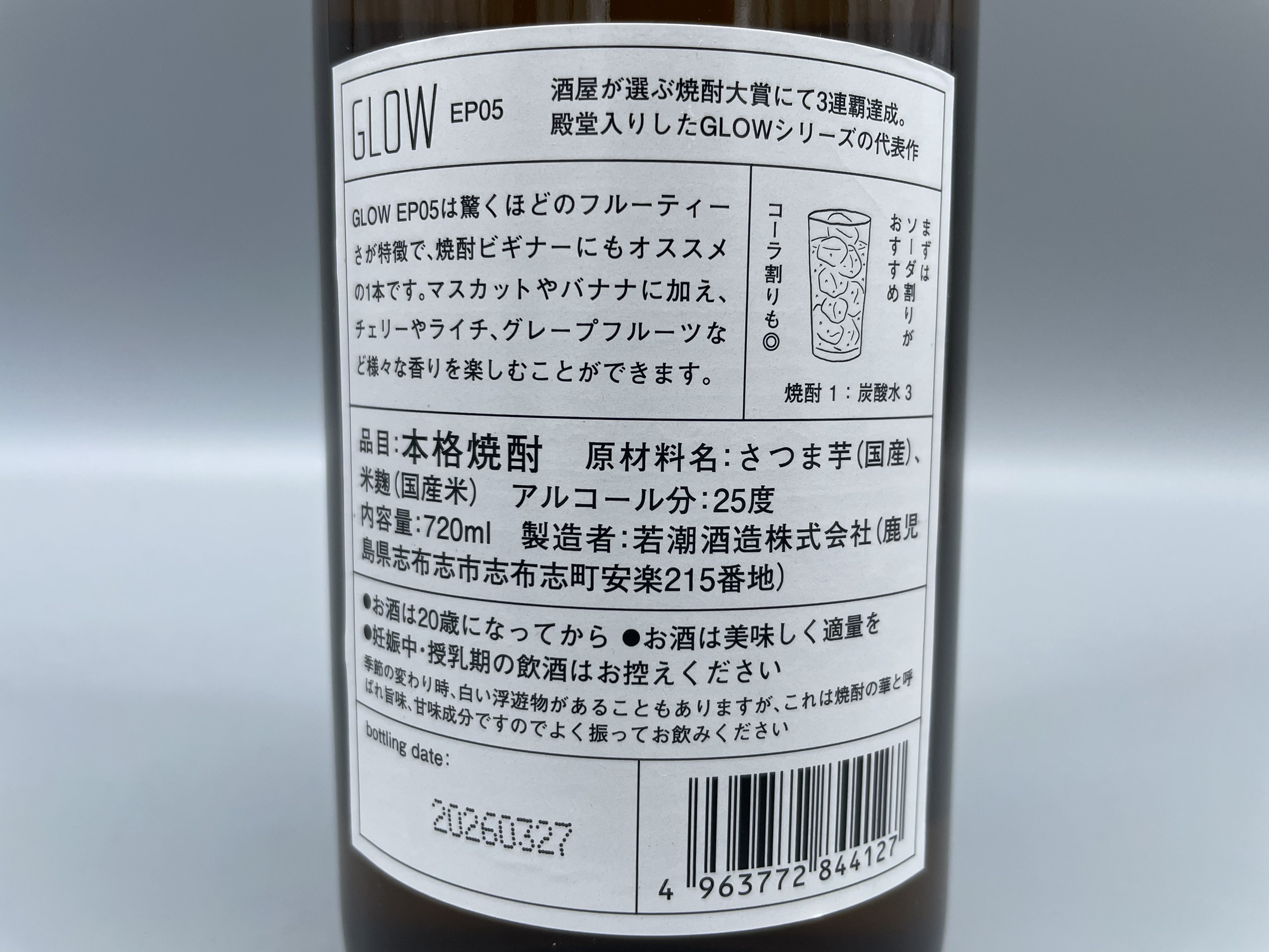 酒屋が選ぶ焼酎大賞にて、2022年、2023年、2024年の芋焼酎部門大賞を受賞したGLOWシリーズの代表作。