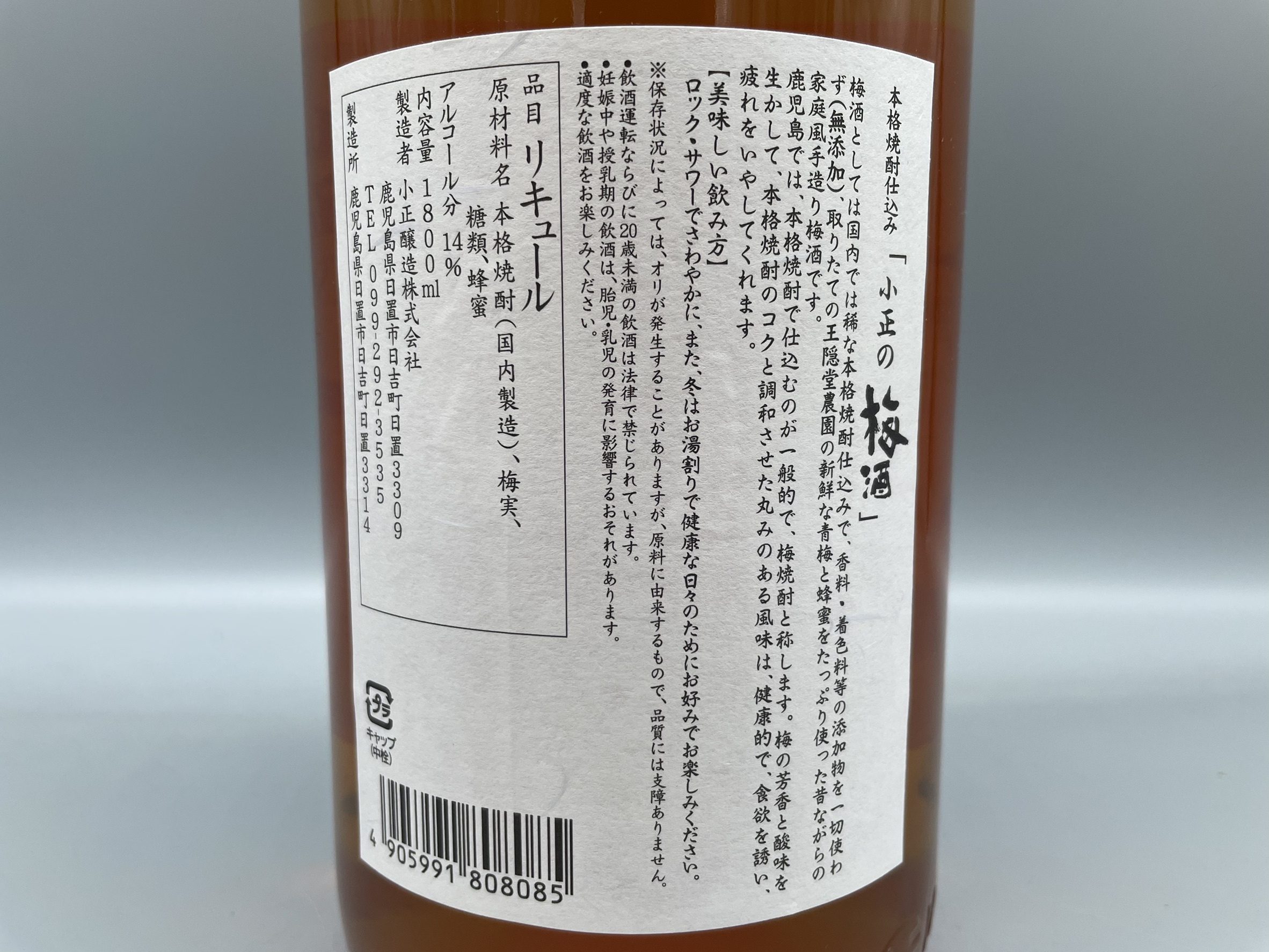 小正の梅酒は、梅の芳香と酸味を活かし、本格焼酎のコクと見事に調和させた丸みのある味わいは健康的で、食欲を誘う食前酒にも最適です。