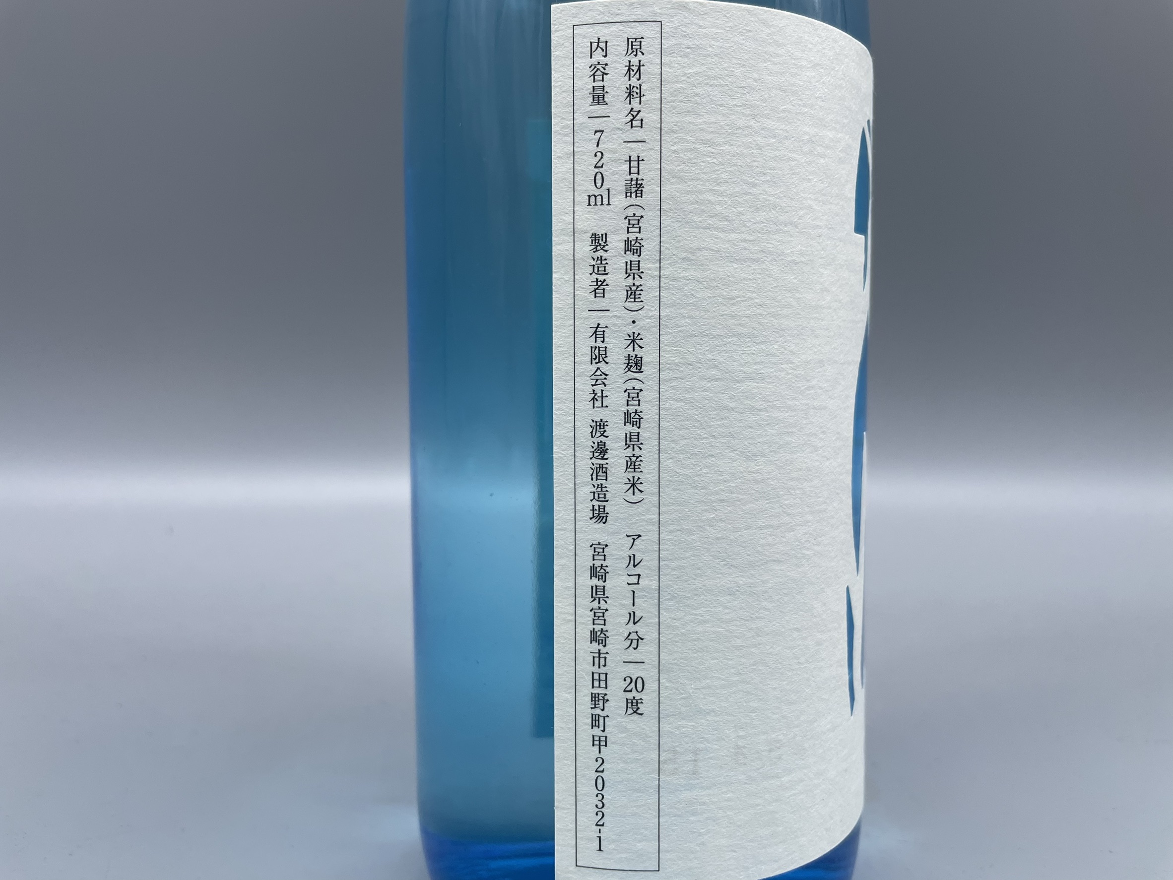 なんとも涼しげなブルーボトル入りで、かわいいペンギンの切り絵ラベルと見た目も夏仕様の芋焼酎です。