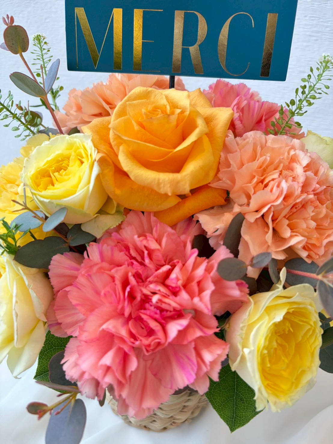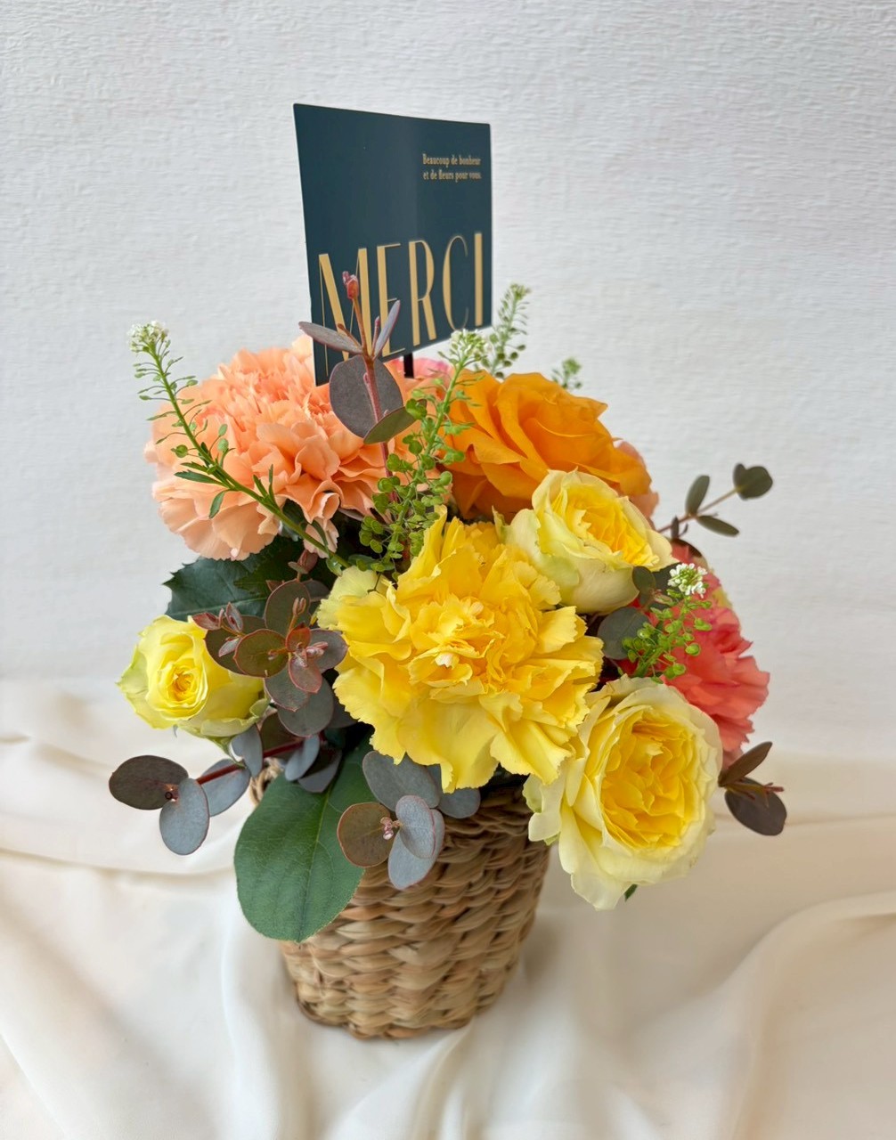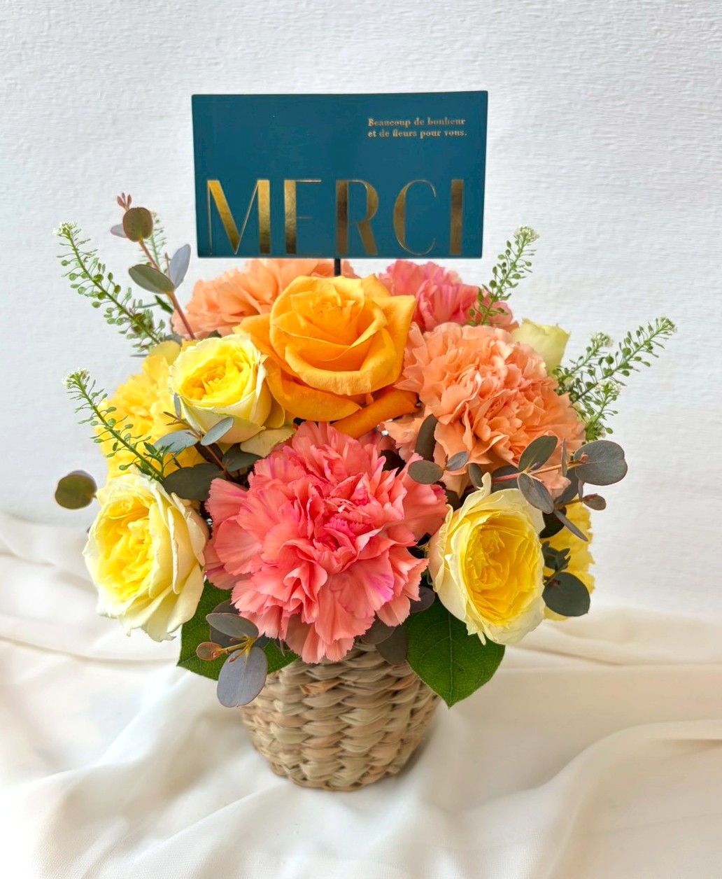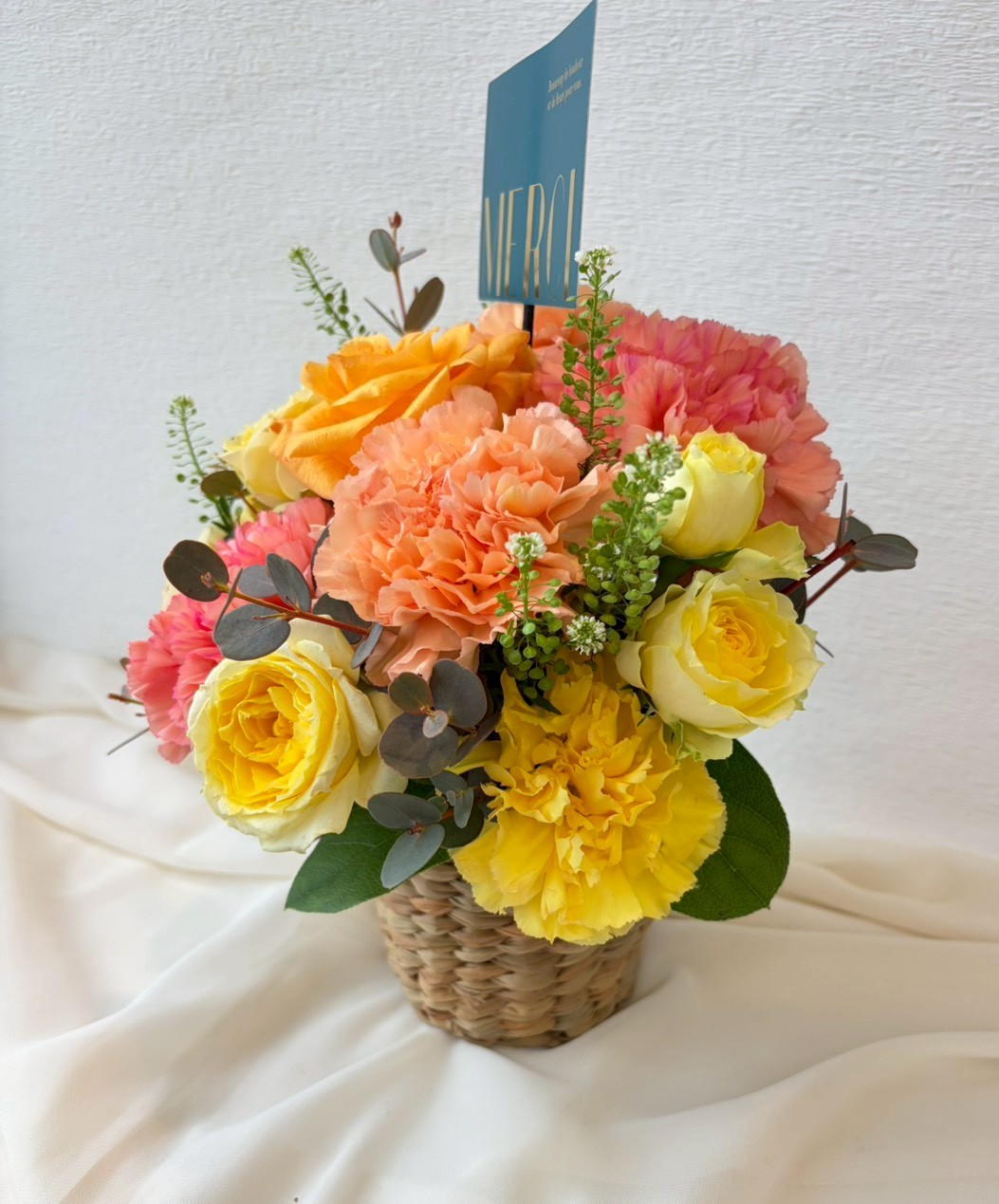 【使用花材】カーネーション、バラ、季節の小花、グリーン