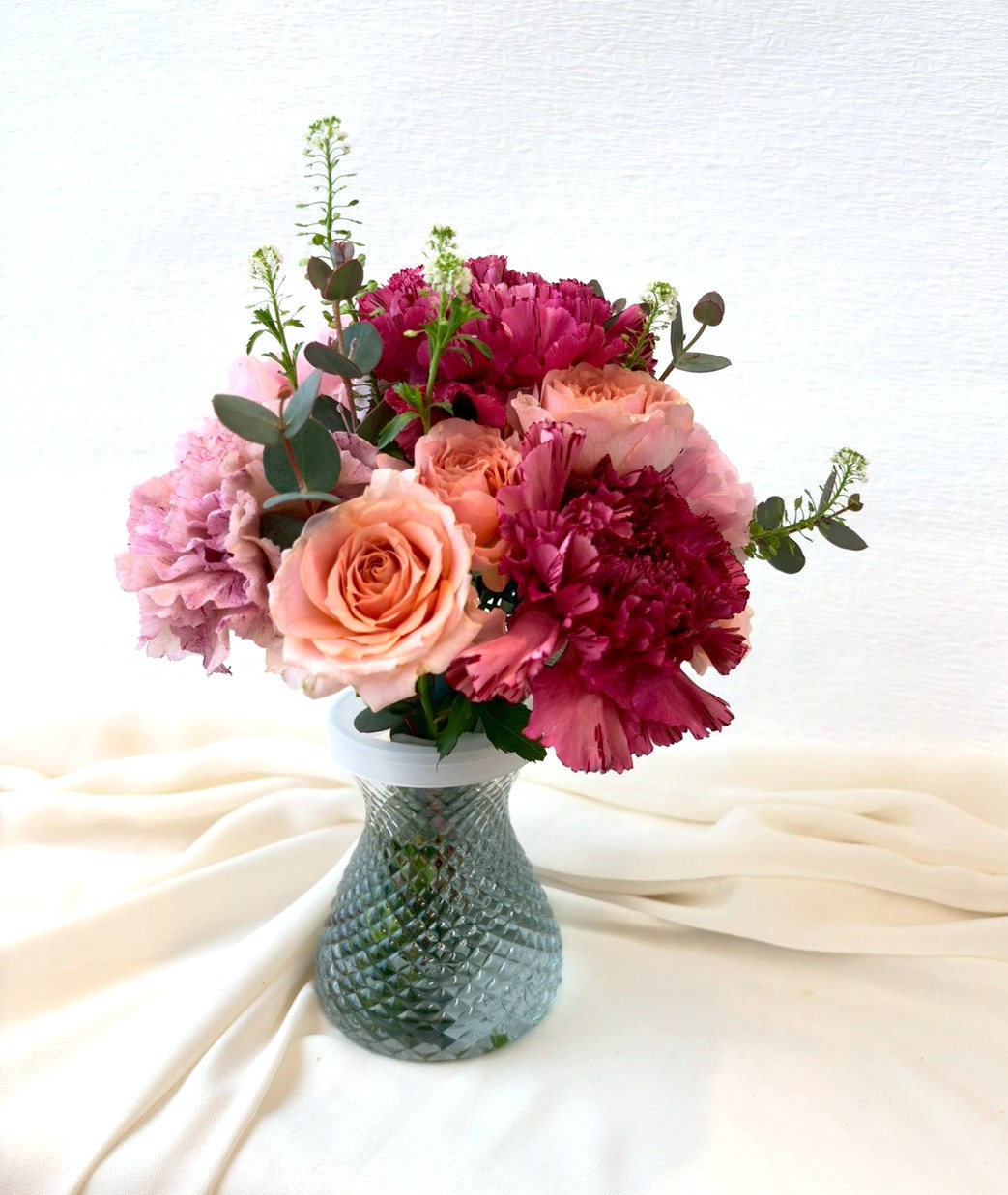 【使用花材】カーネーション、スプレーバラ、季節の小花、グリーン