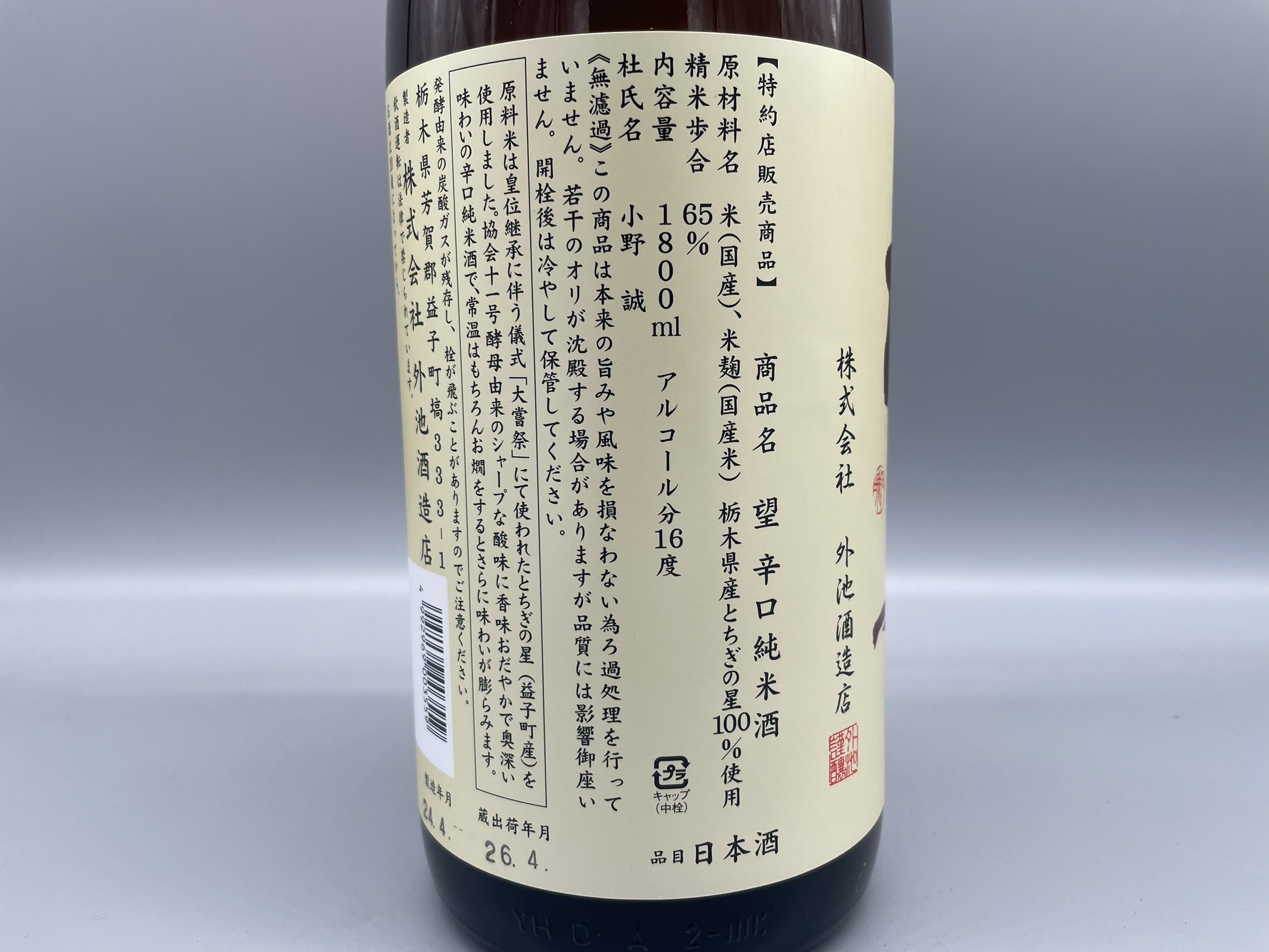 ※原料米の「とちぎの星」は、皇位継承に伴う儀式「大嘗祭」にて使用された品種です。