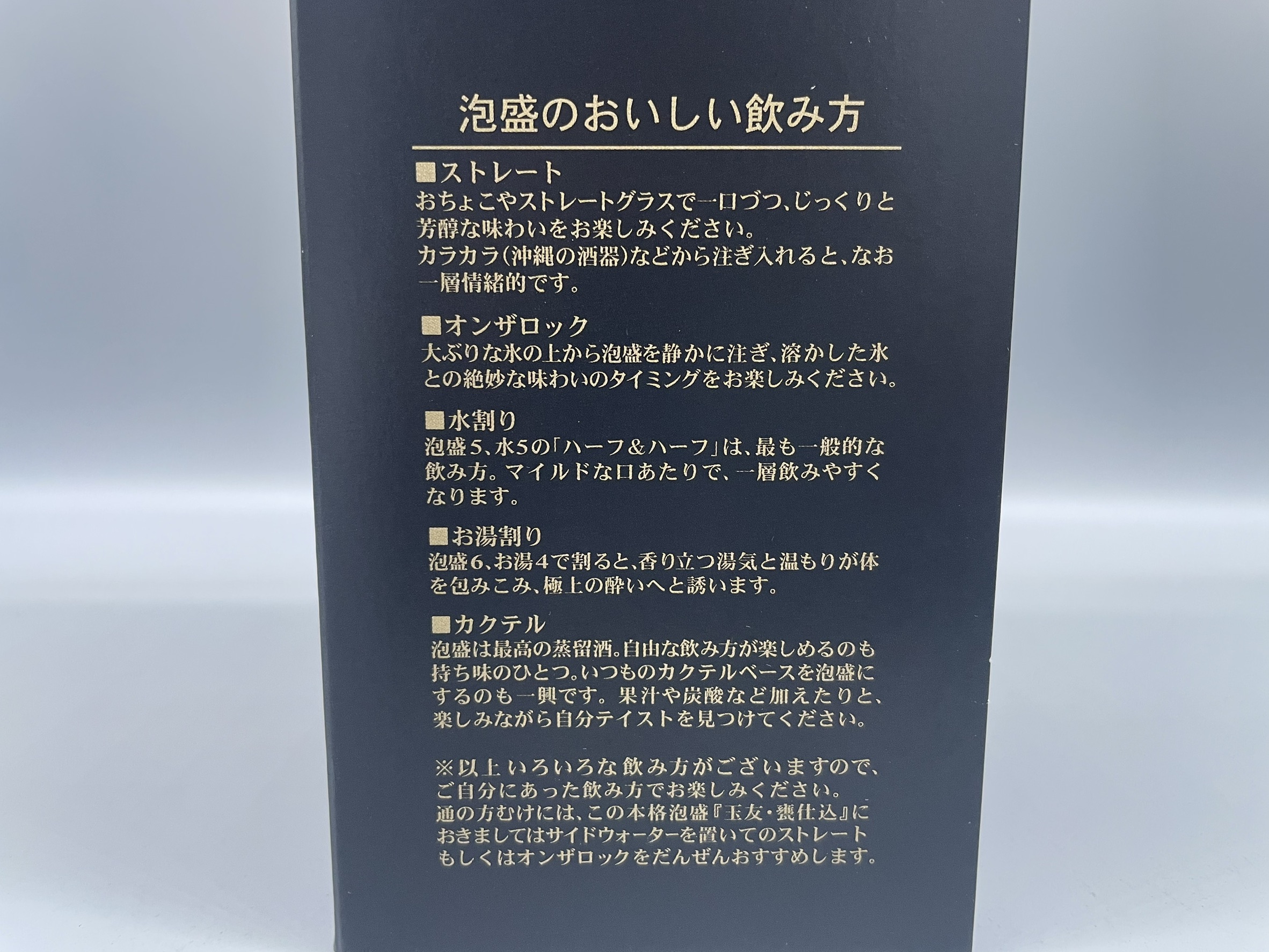 5年間熟成させた泡盛は、古酒香(甘い古酒らしい香り)が漂う本格的古酒の味わいです。