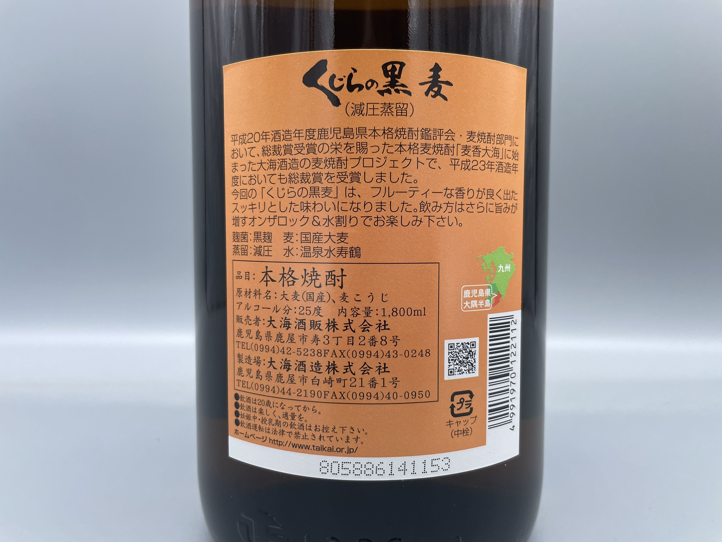 福岡県産の焼酎用大麦「はるしずく」と黒麹で仕込み、割水に垂水温泉水「寿鶴」を用いました。