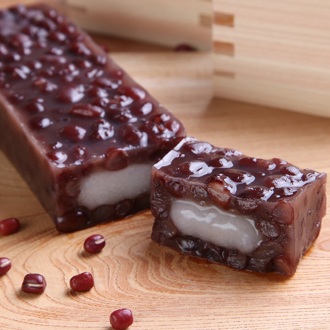 羽二重餅はやわらか。小豆はやさしくほどけます。