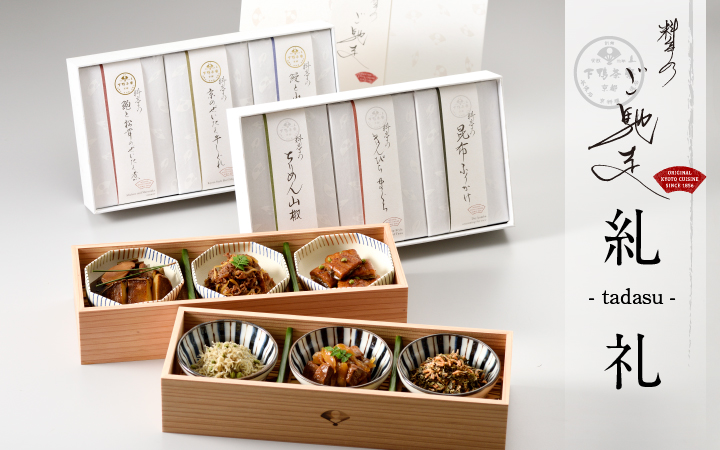 商品内容 | 弊社自慢の数々を存分に味わっていただけるよう、内容量たっぷりのお詰合せをご用意いたしました。 ご出産やご結婚のお祝いの返礼ギフトとしてぜひご利用ください。 ◆鮑と松茸のぜいたく煮 上質な真昆布を松茸の風味とともにじっくり煮上げ、相性の良い鮑を合わせて贅沢に仕上げました。 醤油、お出汁、砂糖等で味付け、やわらかく煮込んだ肉汁溢れる一品。 絶妙に調和した、海の幸と山の幸の贅をお愉しみください。 ◆京のぜいたく牛しぐれ 国産牛を旨味たっぷりな煮汁でじっくり炊き上げた贅沢なしぐれ煮。 口に含むと様々な味が口の中を通り過ぎることから、一時的に降るしぐれ(時雨)に喩え「しぐれ煮」と呼ばれています。 料理人が炊き具合を見極め、生姜と牛肉の旨味のバランスを絶妙に仕上げたこだわりの一品です。 ◆鰻と山椒のぜいたく煮 国産の鰻を、上質な実山椒で香り高く煮上げました。 料理人の技でふっくら仕上げた鰻に山椒がきいた爽やかな香りが口の中に広がる上品な味。 甘すぎず、辛すぎず。 酒の肴としても美味しくいただけます。 ◆ちりめん山椒 白いじゃこと鮮やかな山椒の碧が特徴です。 国産の良質なちりめんじゃこ・実山椒を使用し、職人が昔ながらの手法で上品に炊き上げました。 温かいご飯はもちろん、お酒、チーズとの相性も抜群です。 ◆きんぴらまぐろ ふっくらとしたまぐろと、しゃきっとした牛蒡の歯ごたえを楽しんで頂けます。 あめ色になるまでじっくりと炊き合わせ、お互いの旨みを充分に吸わせたきんぴらまぐろは、お子様からご年配の方まで幅広く人気の一品です。 ◆昆布ふりかけ 北海道産がごめ昆布・塩昆布を贅沢に使い、ごまの香ばしさ、そして山椒の香りを絶妙に調和させたふりかけです。 そのまま炊きたての御飯にはもちろん、お弁当やお茶漬けに入れても特有の粘りやとろみをお楽しみいただけます。 炊きたてのご飯と相性も良く、お食事のもう一品や少し贅沢なお酒の肴としても最適です。 上品な扇柄紙箱入りの二段箱でご用意しております。 贈り物や手土産にぜひご利用ください。 【原材料名】 ◆鮑と松茸のぜいたく煮 煮あわび(国内製造)、料理酒、松茸、醤油、昆布、砂糖、醸造酢、たまり醤油、和風だし(混合ぶし、ブドウ糖果糖液糖、その他)、水飴、昆布だし、酵母エキス、実山椒/調味料(アミノ酸等)、酸味料、糊料(増粘多糖類)、甘味料(甘草)、着色料(カラメル) ◆京のぜいたく牛しぐれ 牛肉(国産)、料理酒、醤油、昆布だし、砂糖、生姜、醸造酢、たまり醤油、和風だし(混合ぶし、ブドウ糖果糖液糖、その他)、水飴、酵母エキス/調味料(アミノ酸等)、酸味料、糊料(増粘多糖類)、甘味料(甘草)、着色料(カラメル) ◆鰻と山椒のぜいたく煮 鰻白焼(鰻:国産)、料理酒、昆布だし、醤油、砂糖、醸造酢、たまり醤油、和風だし(混合ぶし、ブドウ糖果糖液糖、その他)、水飴、実山椒、酵母エキス/調味料(アミノ酸等)、酸味料、糊料(増粘多糖類)、甘味料(甘草)、着色料(カラメル) ◆ちりめん山椒 ちりめんじゃこ(国内製造)、醗酵調味料、醤油、実山椒 ◆きんぴらまぐろ まぐろ(国産)、砂糖、醤油、ごぼう、還元水飴、水飴、塩こうじ、生姜、清酒、寒天 ◆昆布ふりかけ 昆布(北海道産)(がごめ昆布20%)、ごま、干しあみえび(ツノナシオキアミ)、山椒、醤油、醸造酢、食塩/ソルビット、調味料(アミノ酸)、甘味料(甘草)、酸味料 (一部に小麦・あわび・さば・大豆・りんご・牛肉・ごまを含む) ※本製品で使用しているオキアミは、えび・かにが混ざる漁法で採取しています。 ※本製品で使用しているちりめんじゃこは、えび・かにが混ざる漁法で採取しています。 【保存方法】 直射日光、高温多湿を避けて保存してください。 開封後は冷蔵庫で保管し、お早めにお召し上がりください。 【パッケージサイズ】 縦155×横275×高100(mm) |