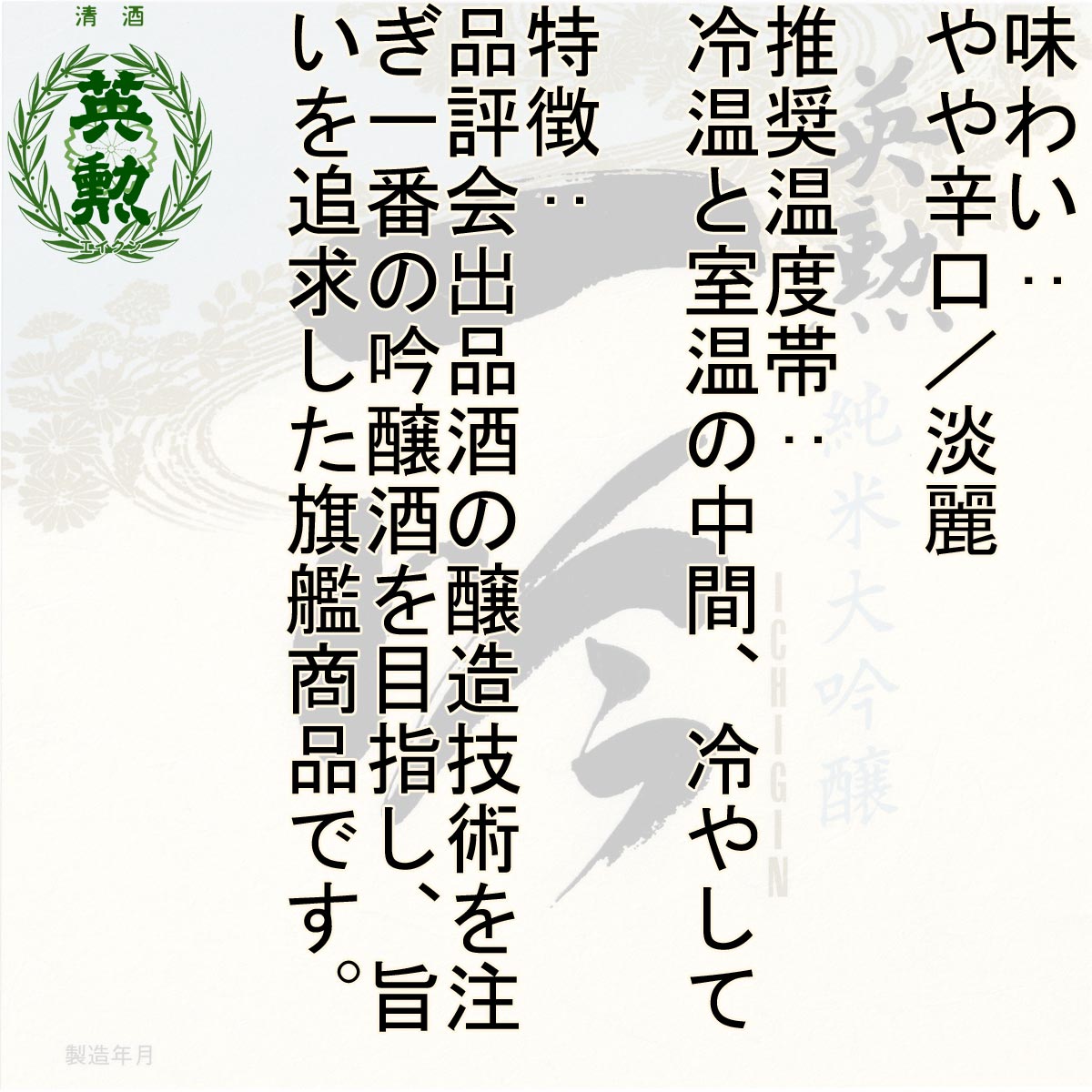 商品名(かな):えいくん じゅんまいだいぎんじょう いづつやいへえさんわりごぶみがき