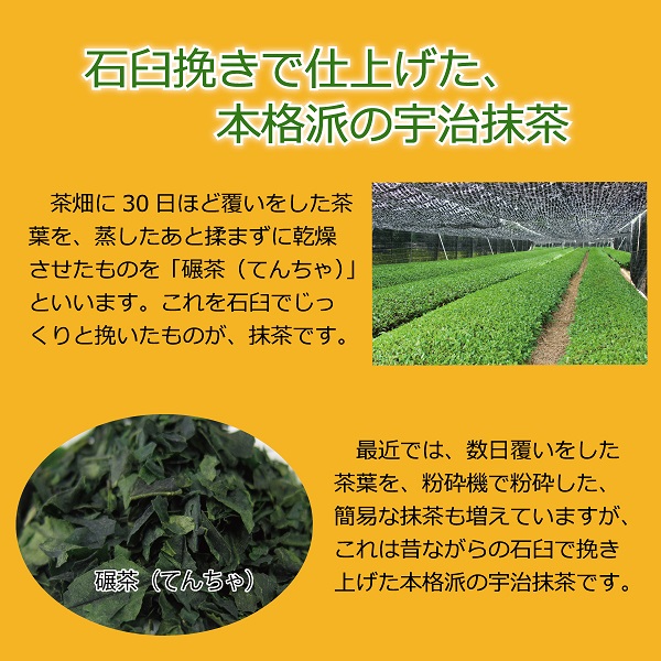 石臼で丁寧に挽いた宇治抹茶を使用。渋みと爽やかな風味が調和したお抹茶です。