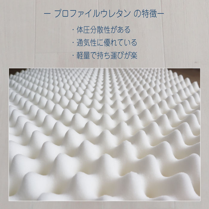 プロファイルマットレスは、体圧分散性があり、通気性にも優れています。厚みが約8cmあるので底付き感が軽減され体をしっかり支えてくれます。軽量(約3kg)で持ち運びも簡単です。